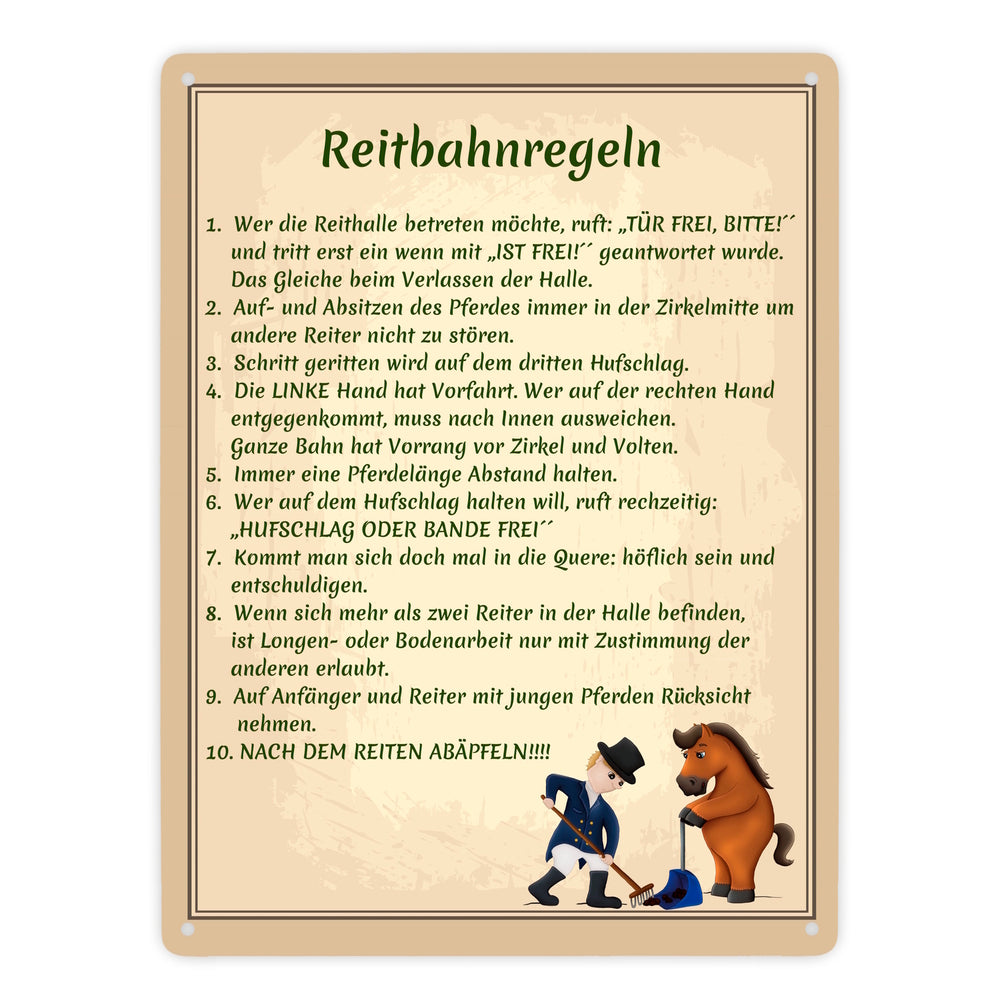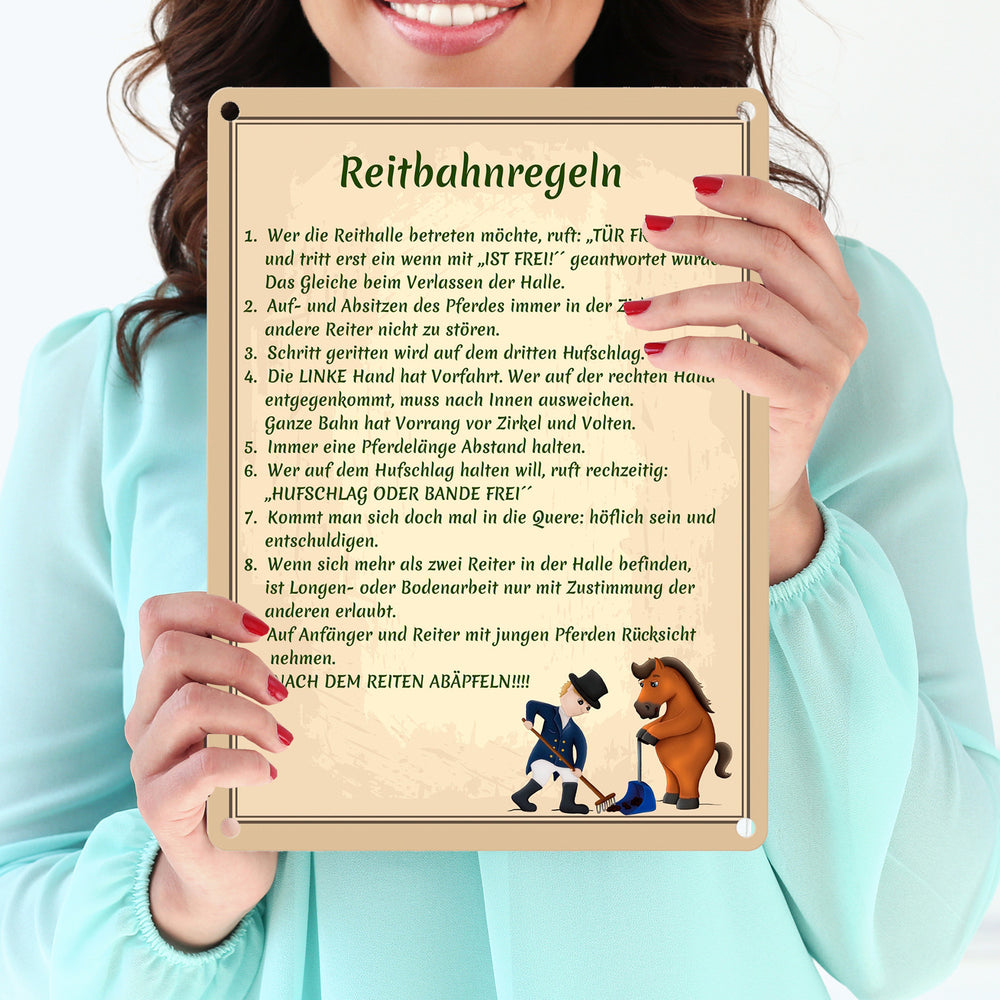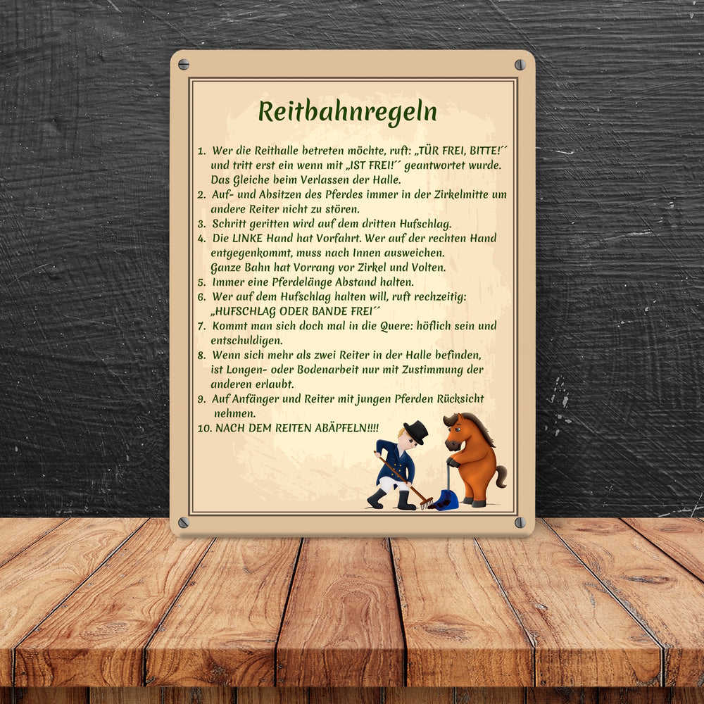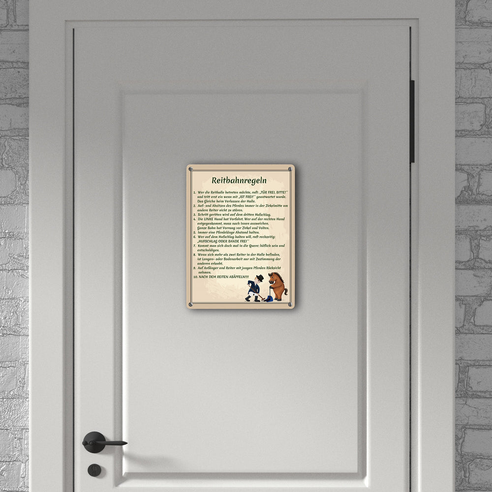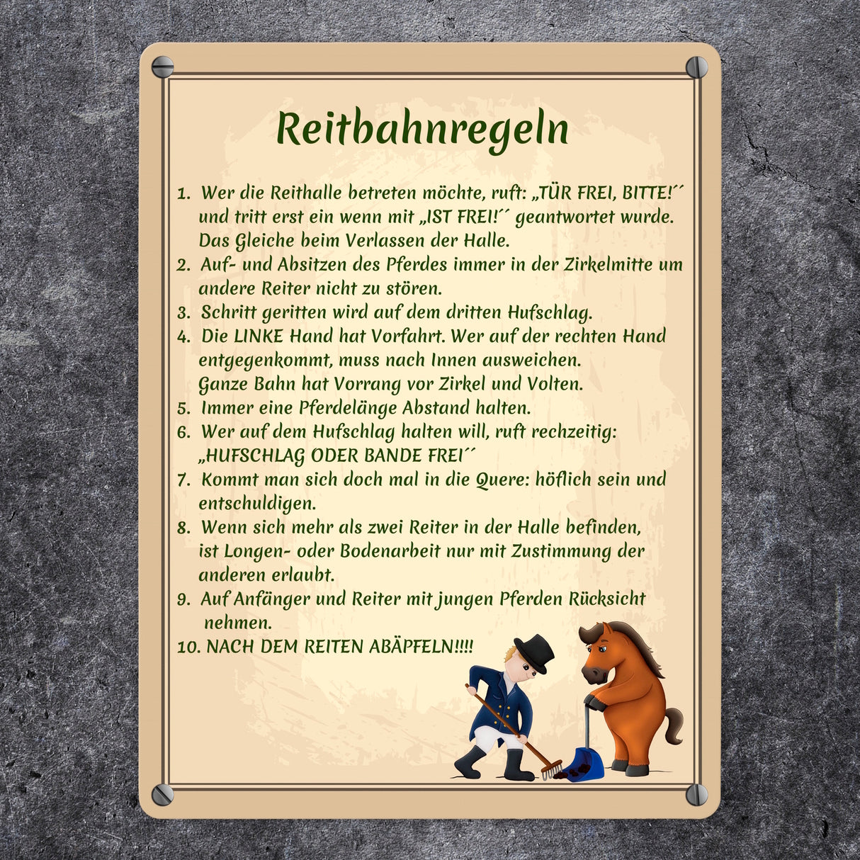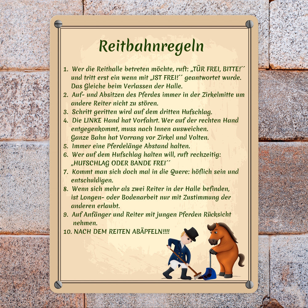 - 1x Reitbahnregeln Metallschild in 15x20 cm in der gewählten Größe