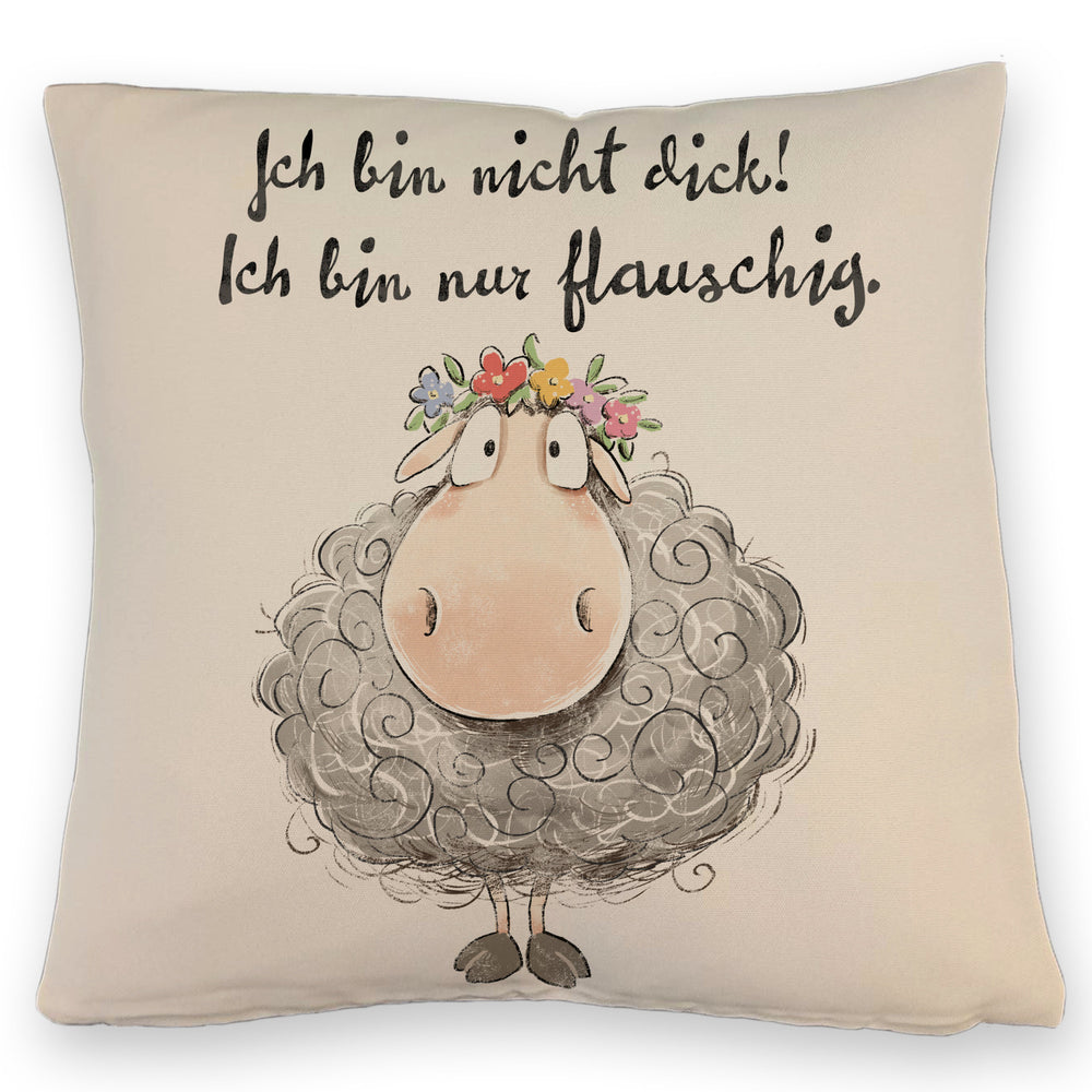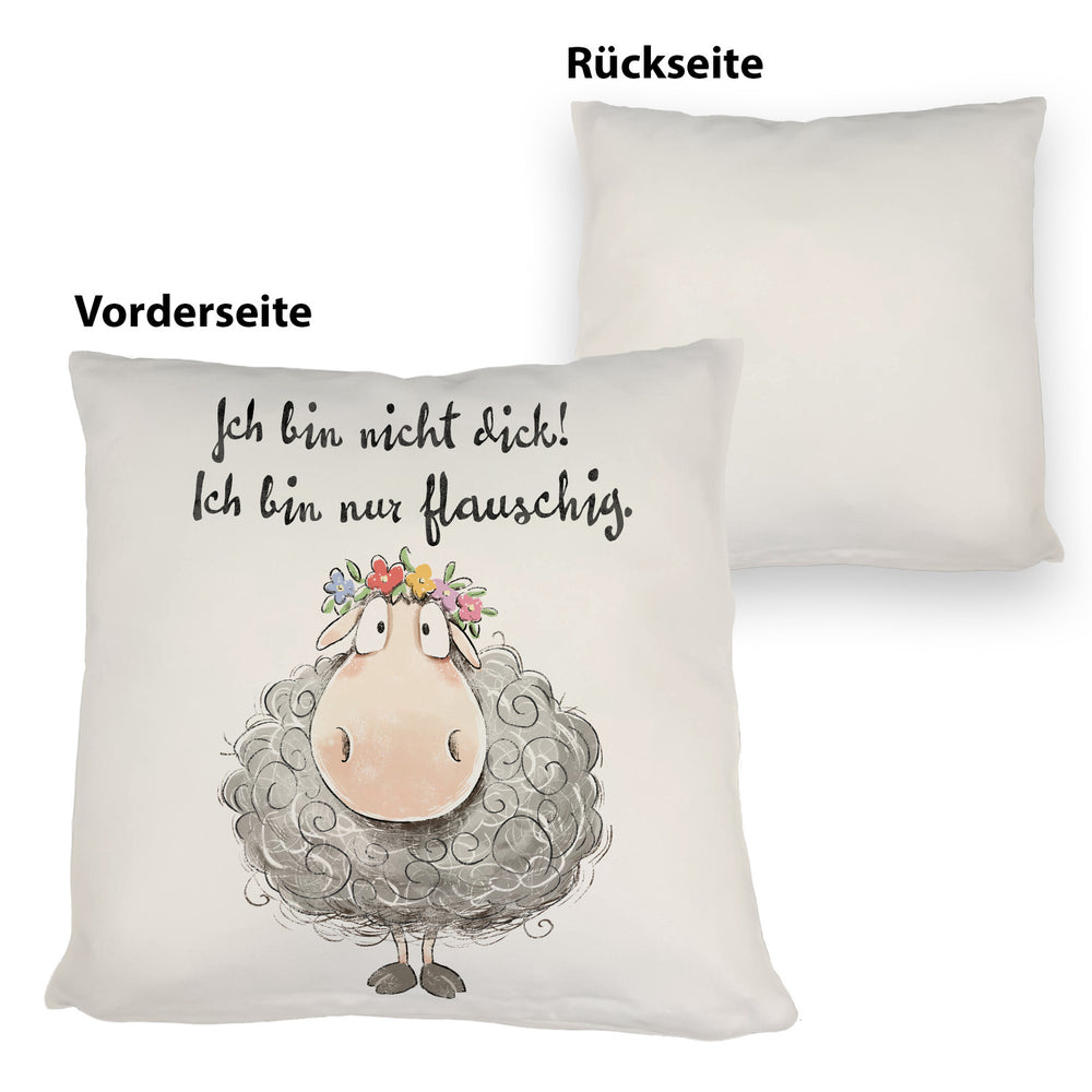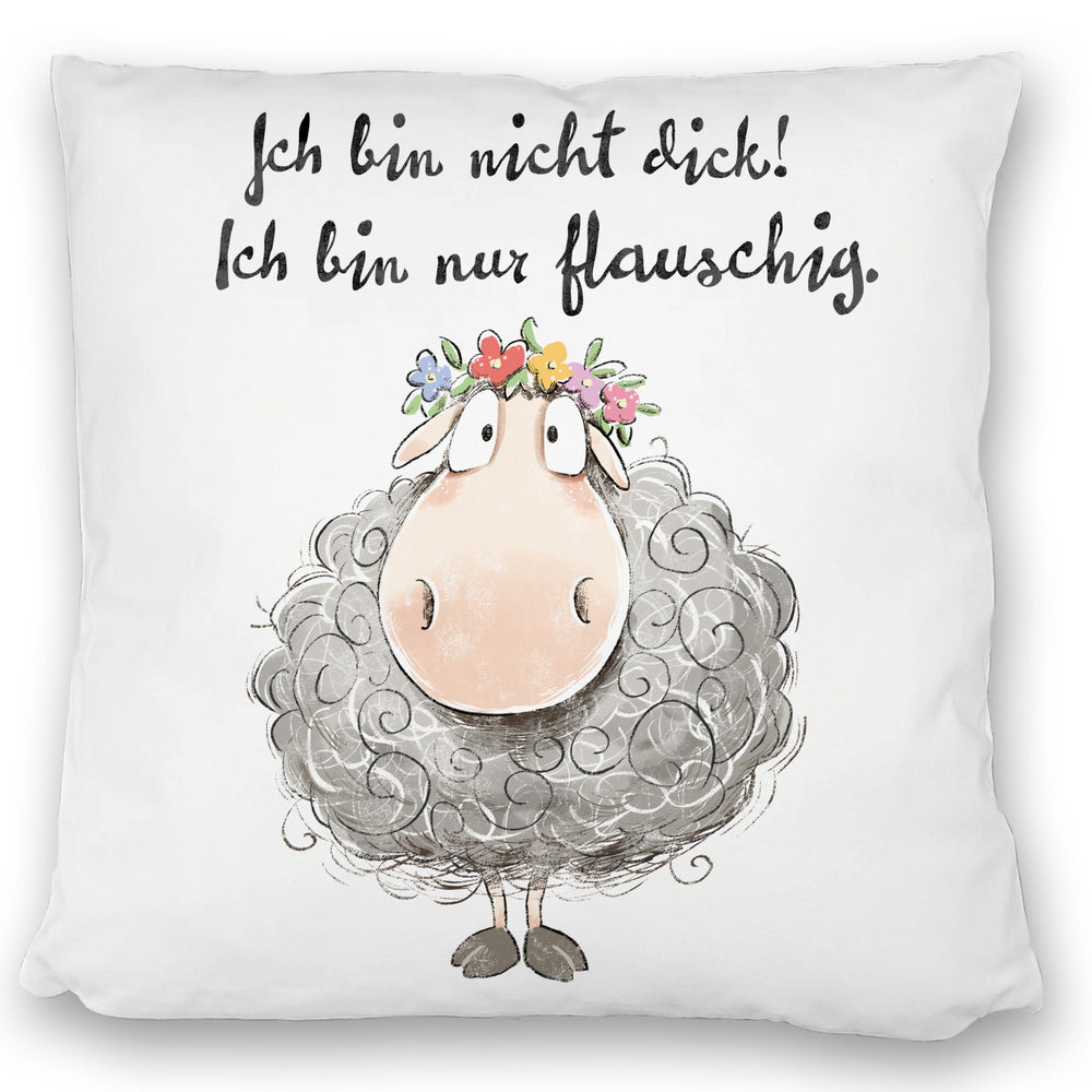 Schaf Kissen mit Spruch Nicht dick nur flauschig