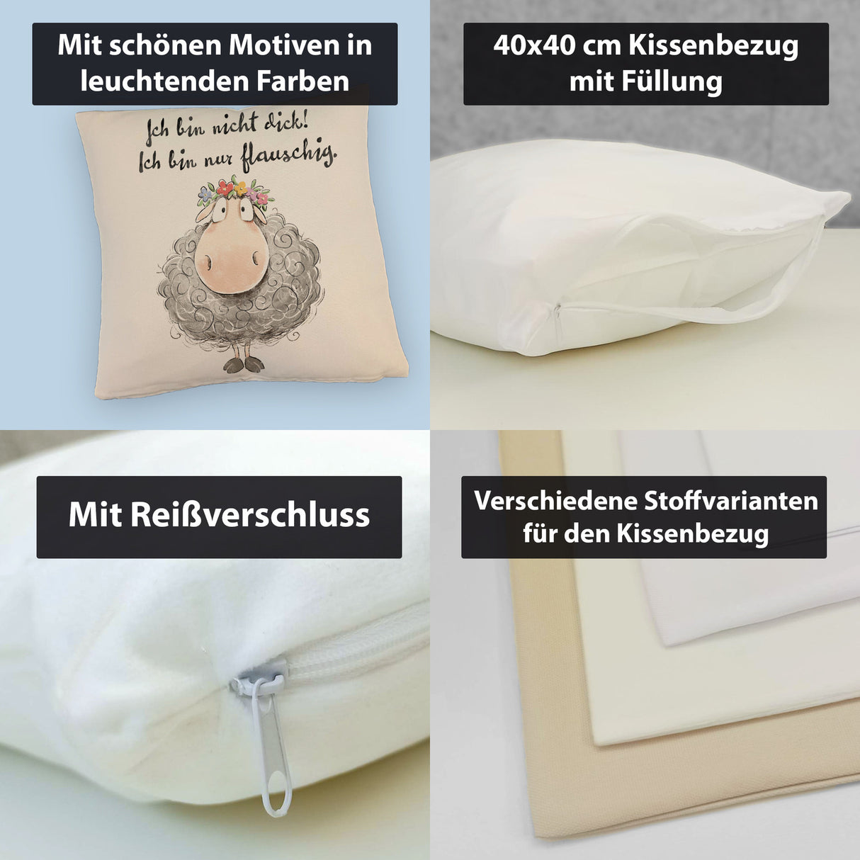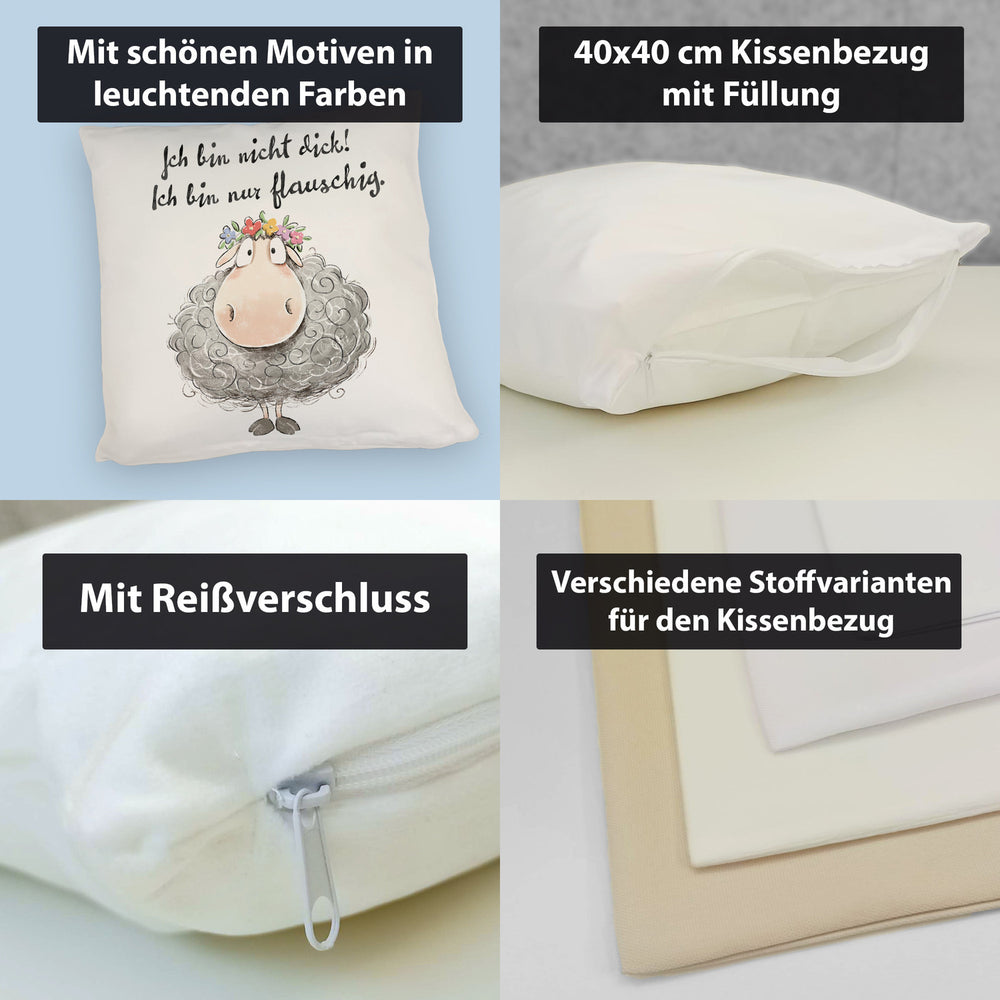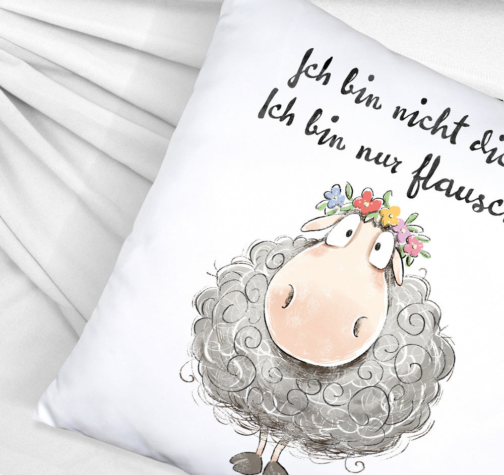 - 1x Schaf Kissen mit Spruch Nicht dick nur flauschig in der gewählten Ausführung