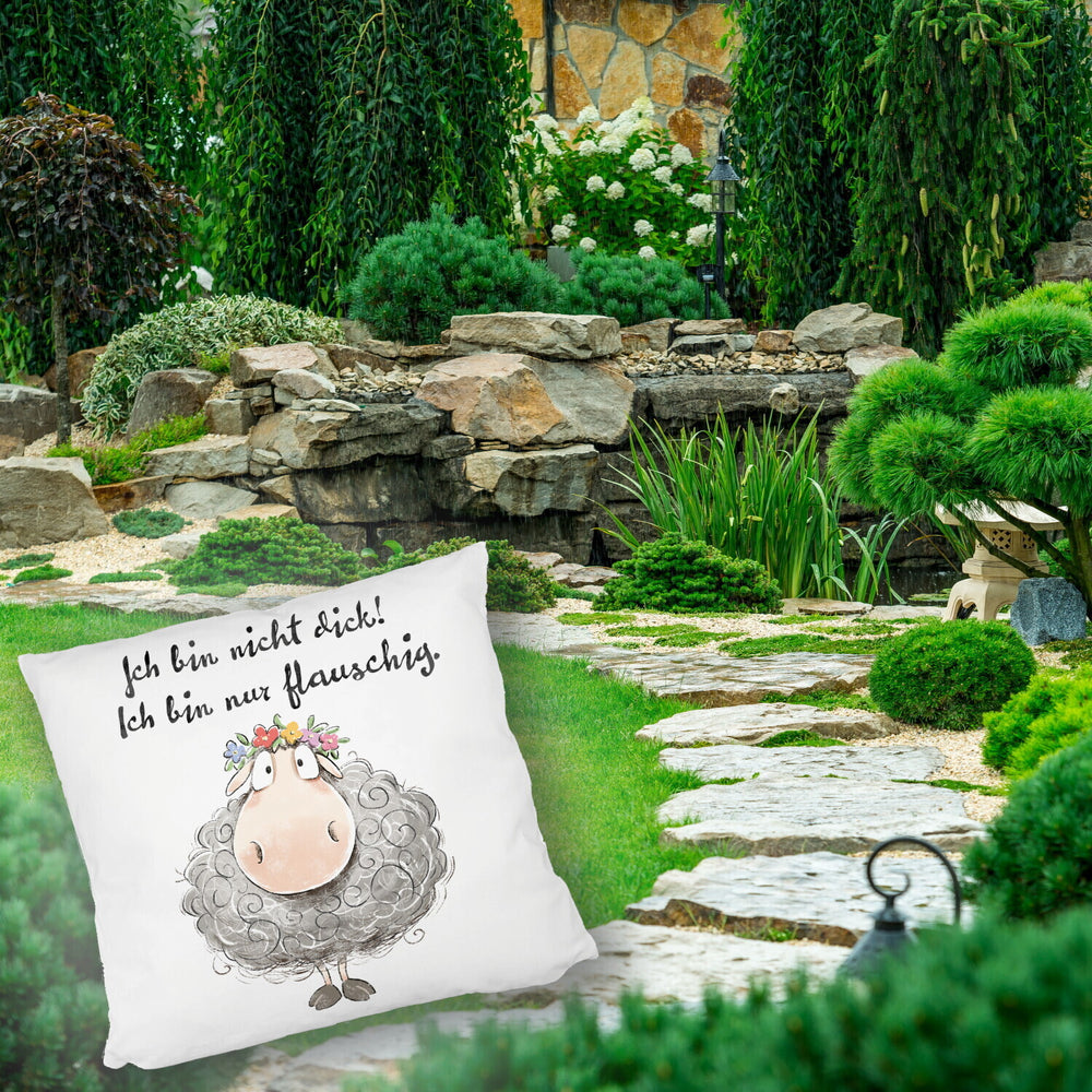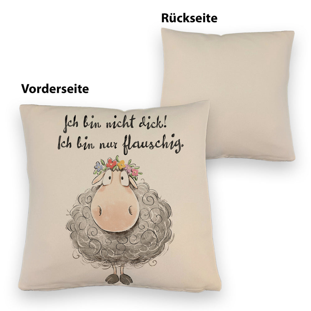 Schaf Kissen mit Spruch Nicht dick nur flauschig - Standard ist auf Lager und wird versandt, sobald es wieder verfügbar ist