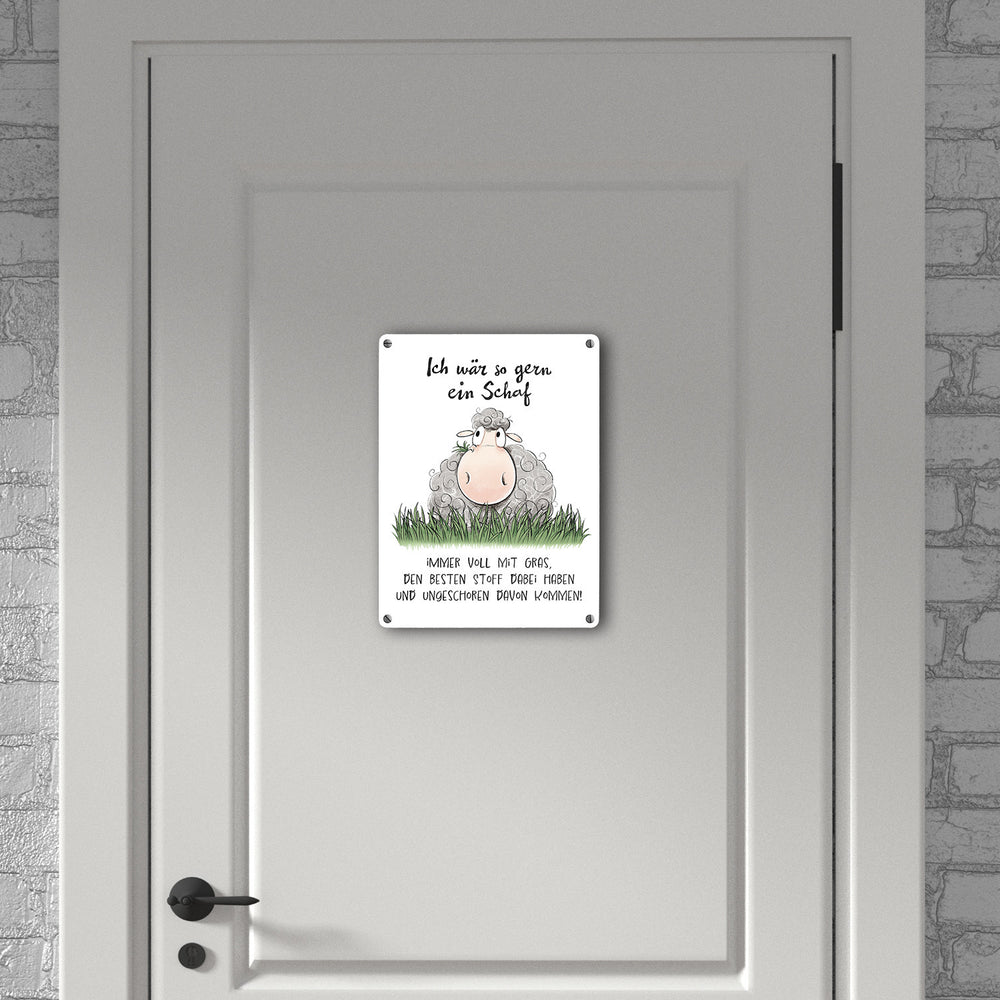 Schaf Metallschild in 15x20 cm mit Spruch ich wär so gern ein Schaf