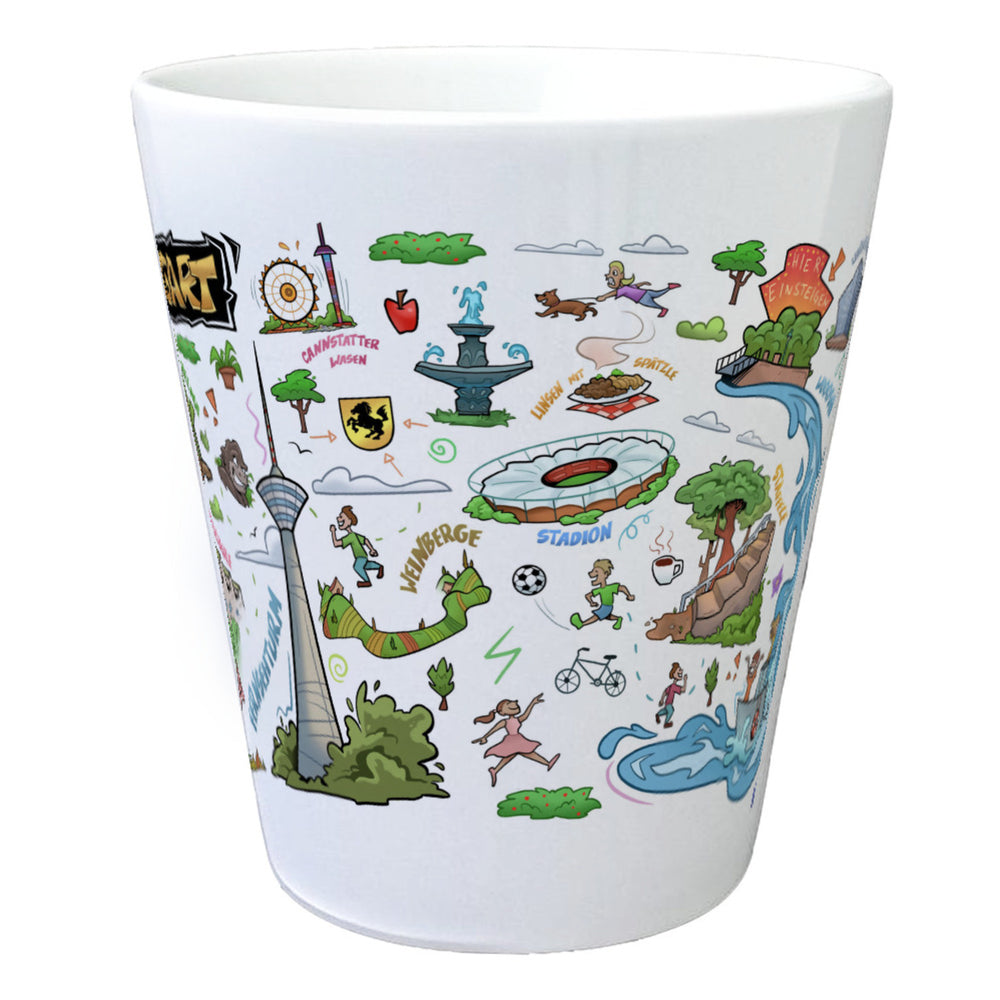 • Der Stuttgart Pop Art Comic Blumentopf ist ein farbenfroher Hingucker! Mit einem lebhaften Wimmelbild im Comicstil fängt er das urbane Feeling Stuttgarts ein. Vom Fernsehturm bis zur Wilhelma sind Schlüssellandmarken detailreich dargestellt. Der dynamische Lebensstil der Stadt wird durch sportliche Figuren und die harmonische Naturkulisse perfekt abgerundet.