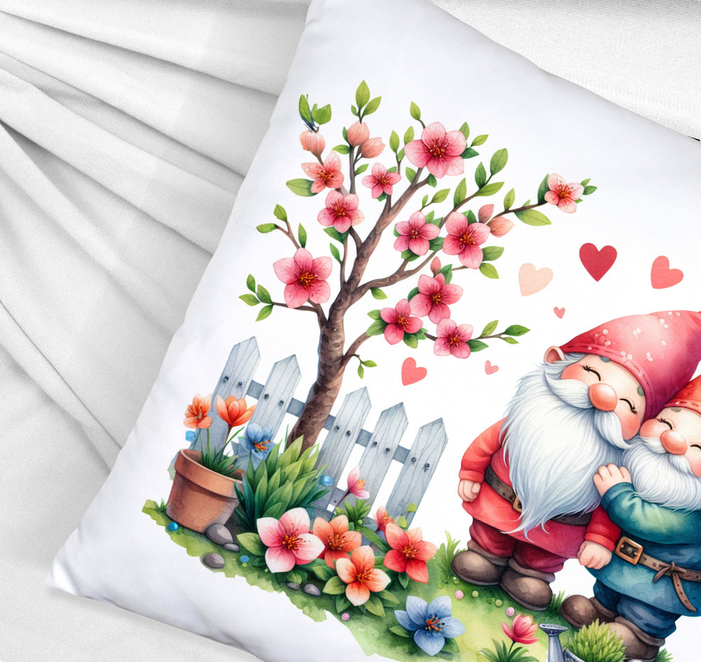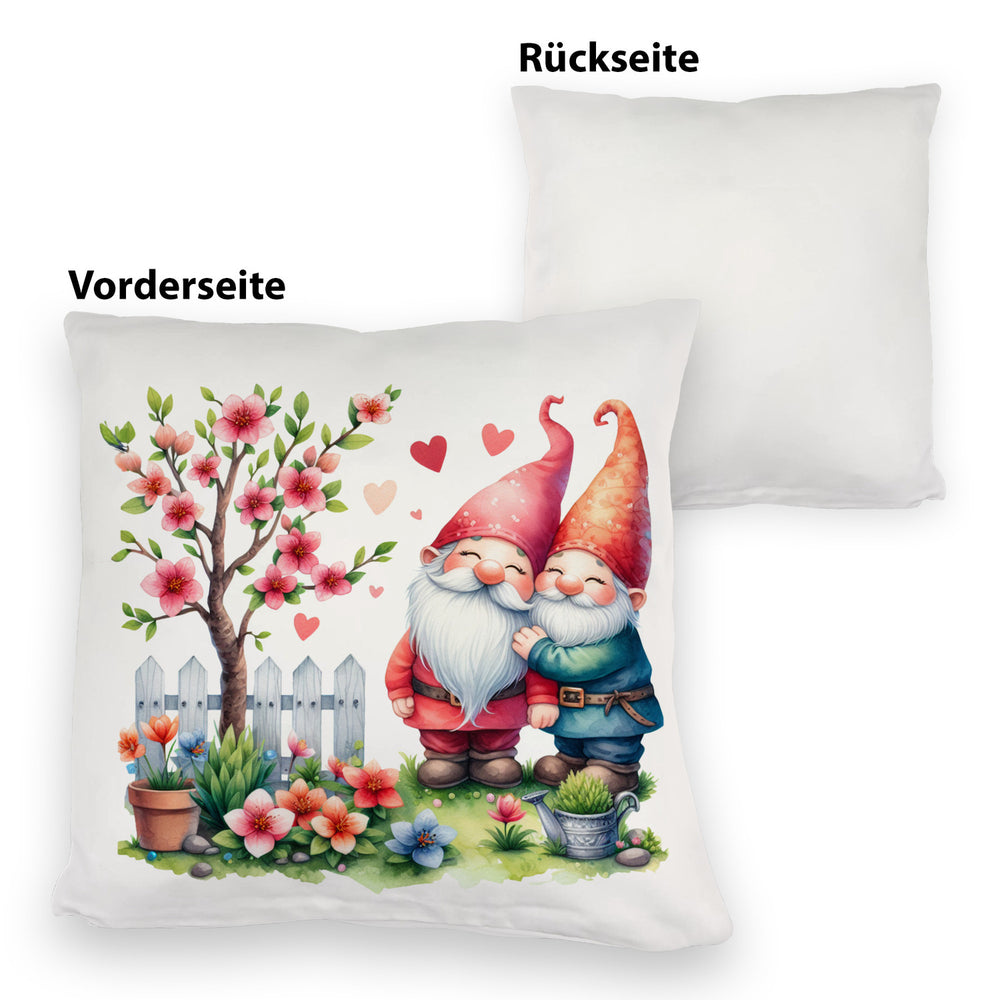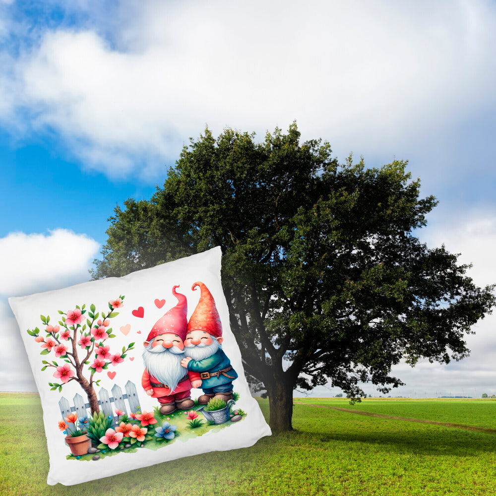 - 1x Verliebte Gartenzwerge mit Baum Kissen in der gewählten Ausführung