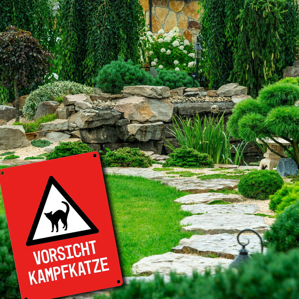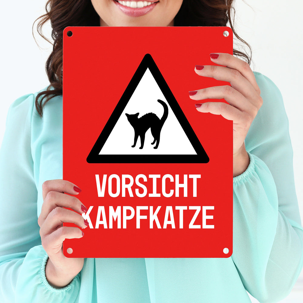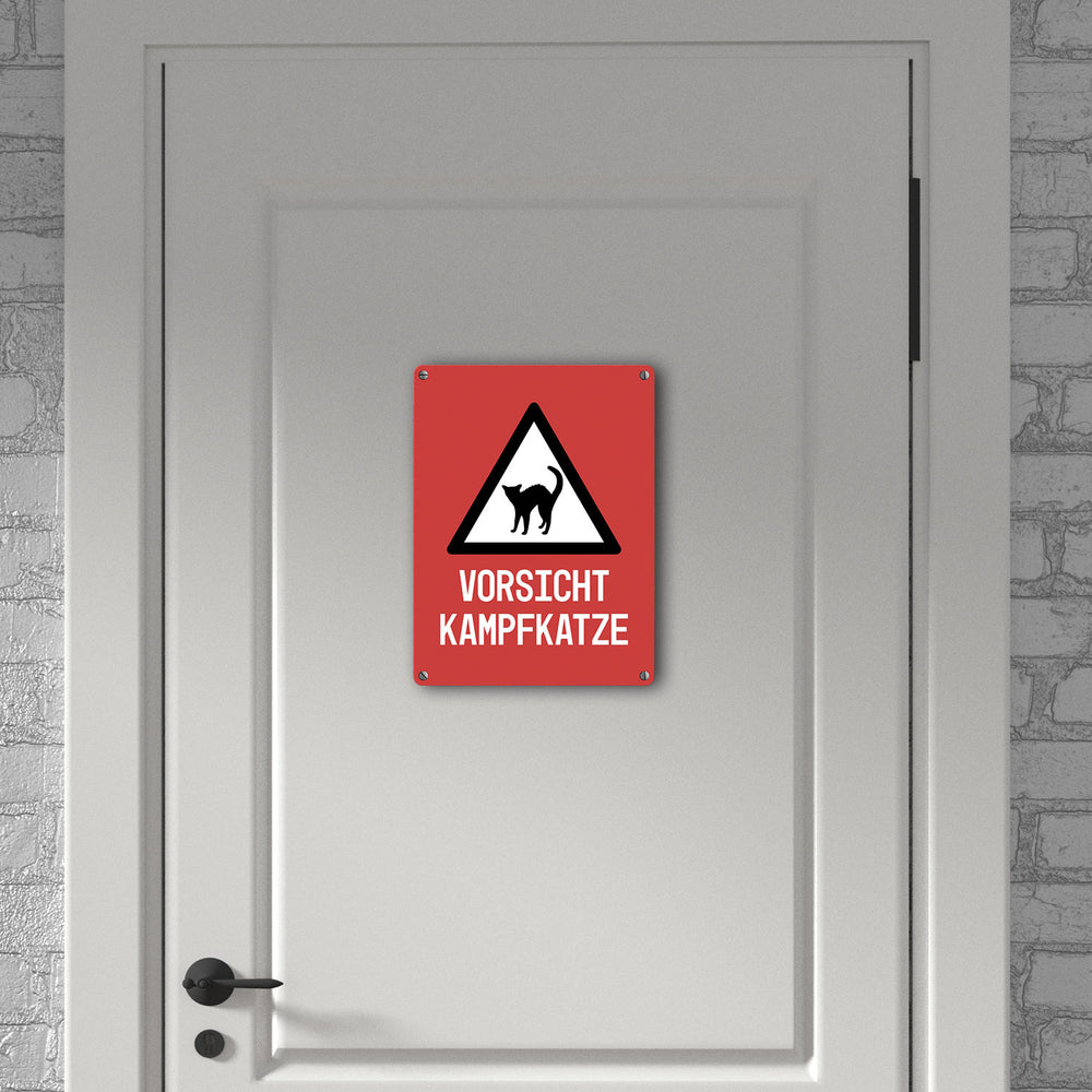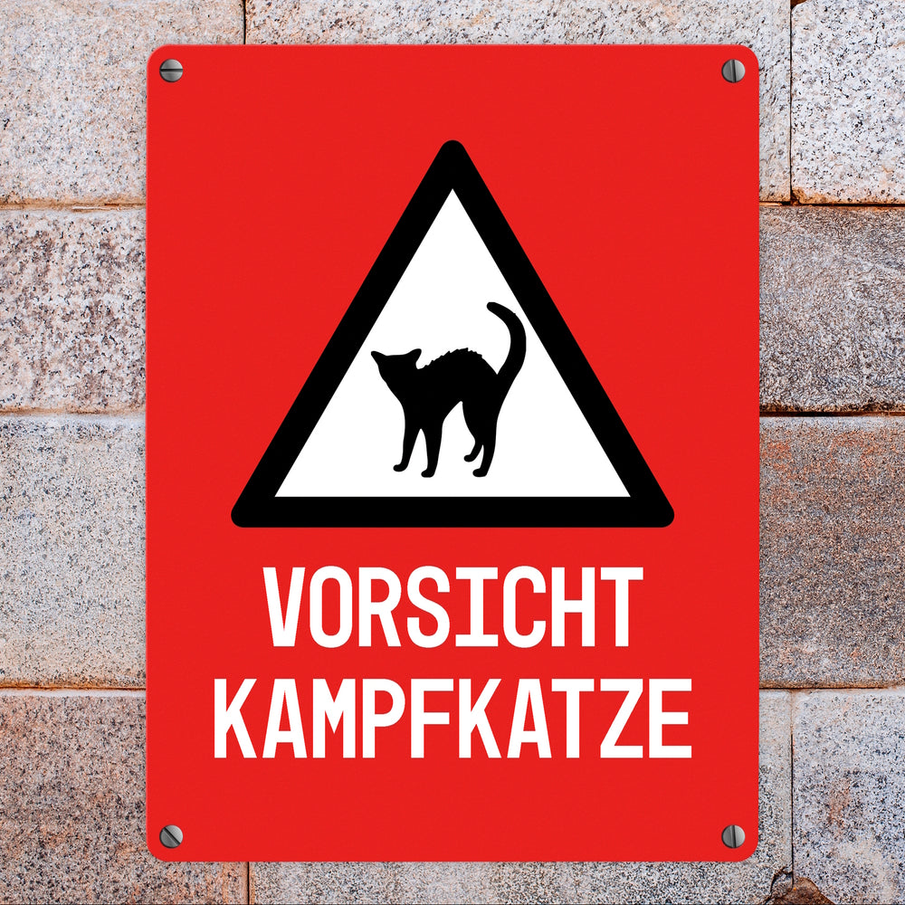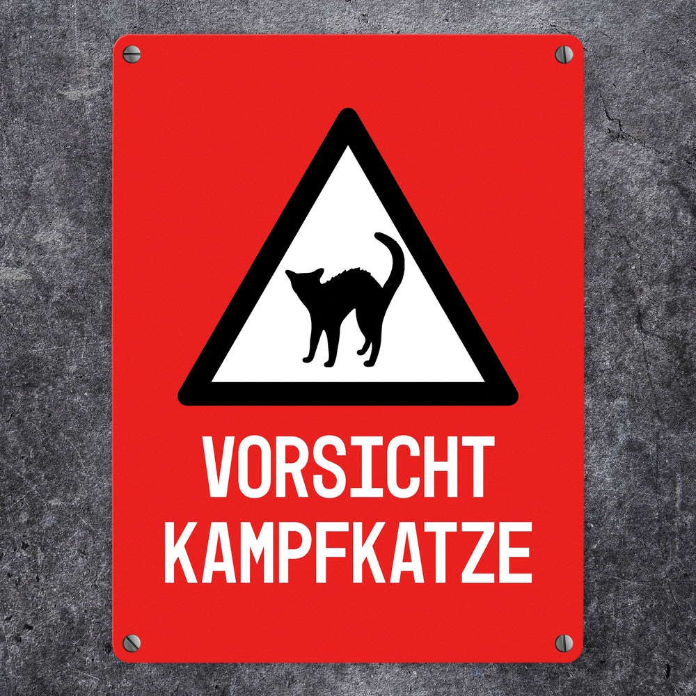 - Lieferumfang: 1x Vorsicht Kampfkatze Warn- und Hinweisschild in Rot mit Piktogramm