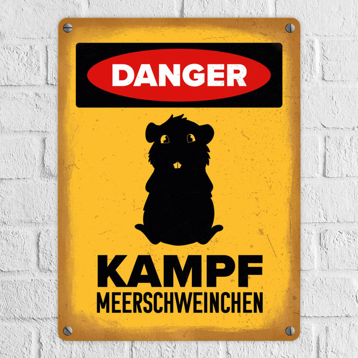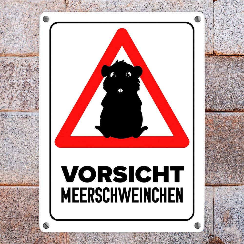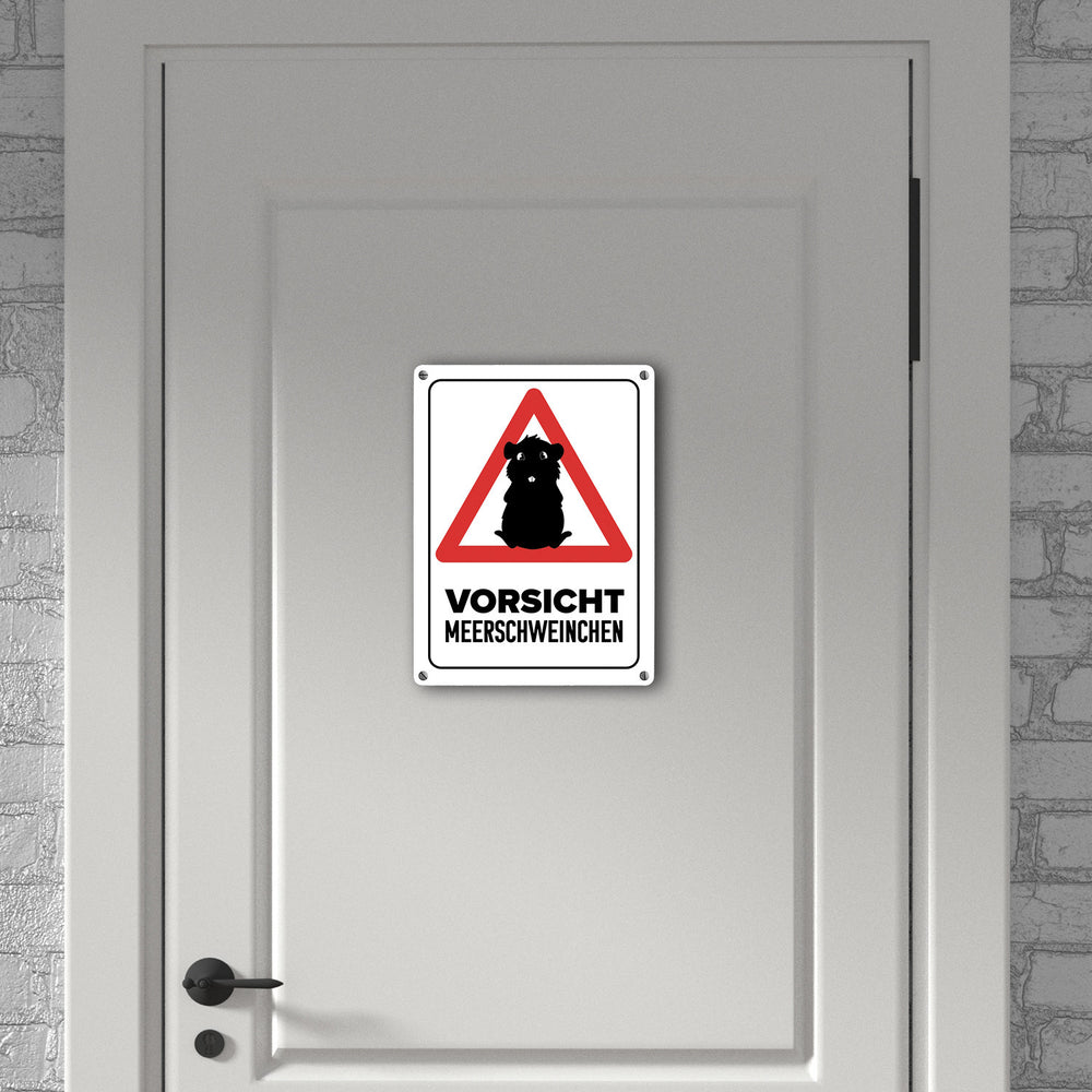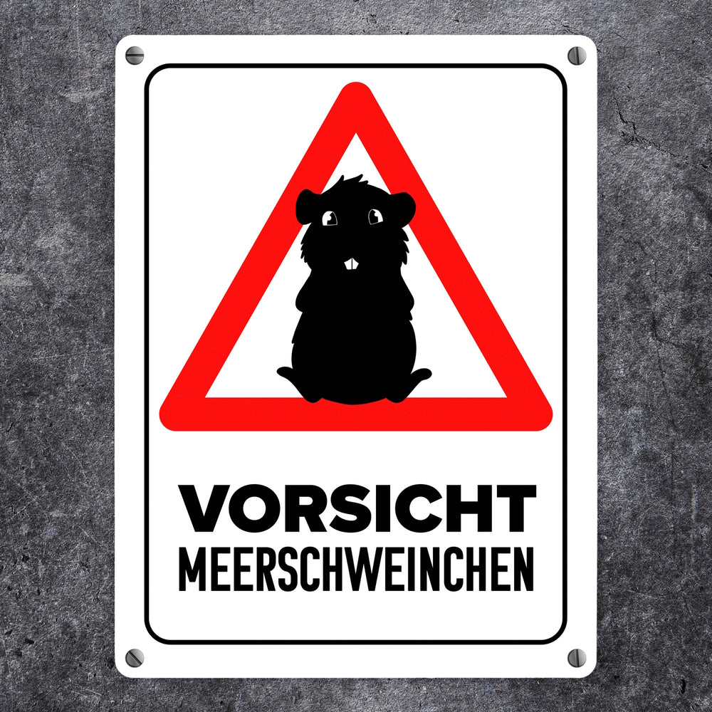 - Meerschweinchen zählen zu den beliebtesten Haustieren Deutschlands. Kein Wunder, die süßen Nagetiere sind pflegeleicht und einfach zu halten. Mit diesem witzigen Metallschild kannst du deine Gäste vor deinem Meerschweinchen warnen. Eine lustige Dekoration für den Käfig oder die Zimmertüre.
