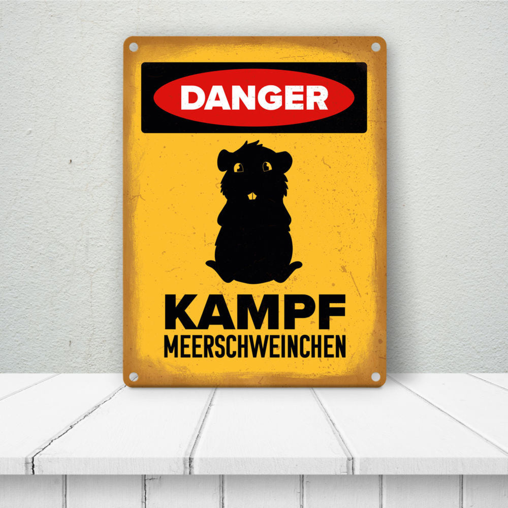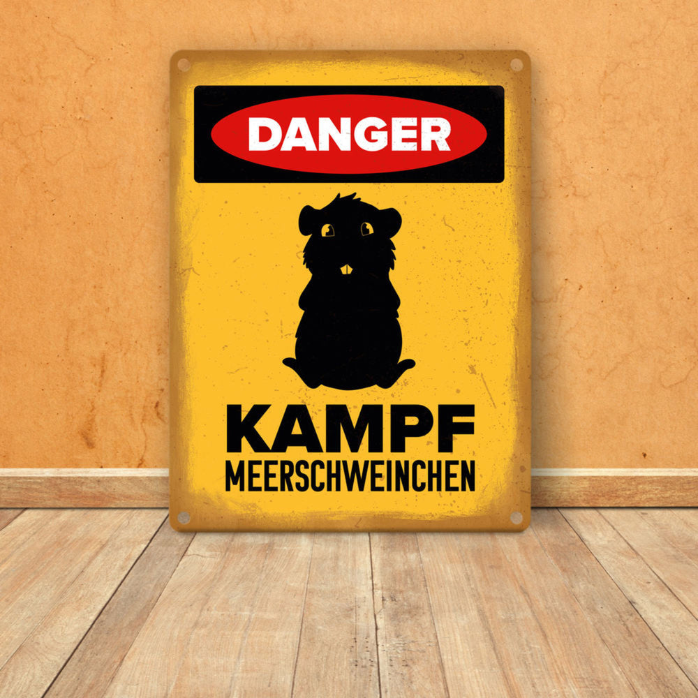 - Das perfekte Metallschild für alle Halter von Meerschweinchen! Du möchtest den Käfig deines Meerschweinchens dekorieren? Mit diesem witzigen Blechschild kannst du genau das tun. Das lustige Schild warnt vor dem gefährlichen Meerschweinchen.