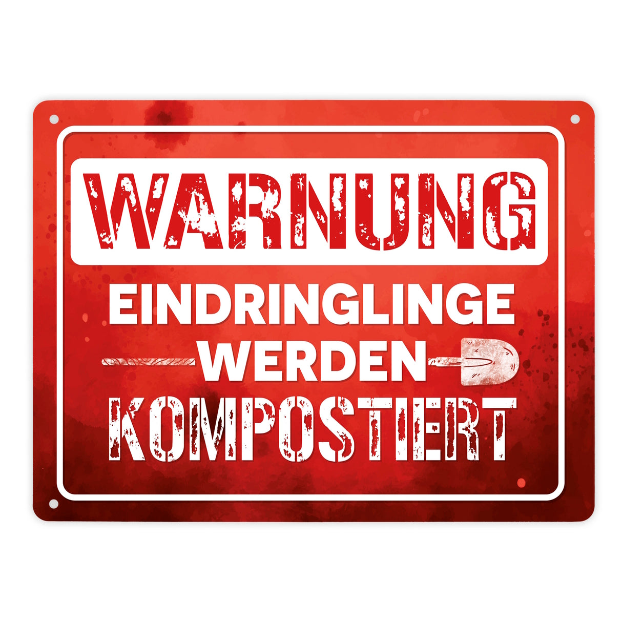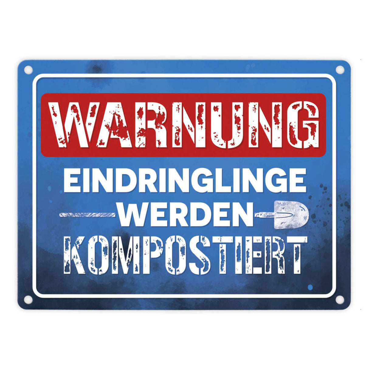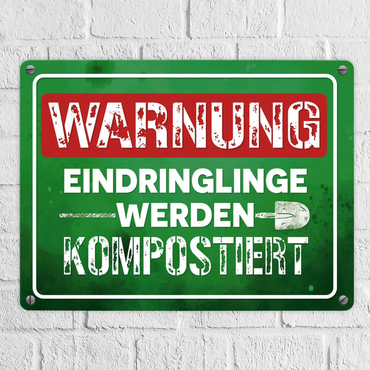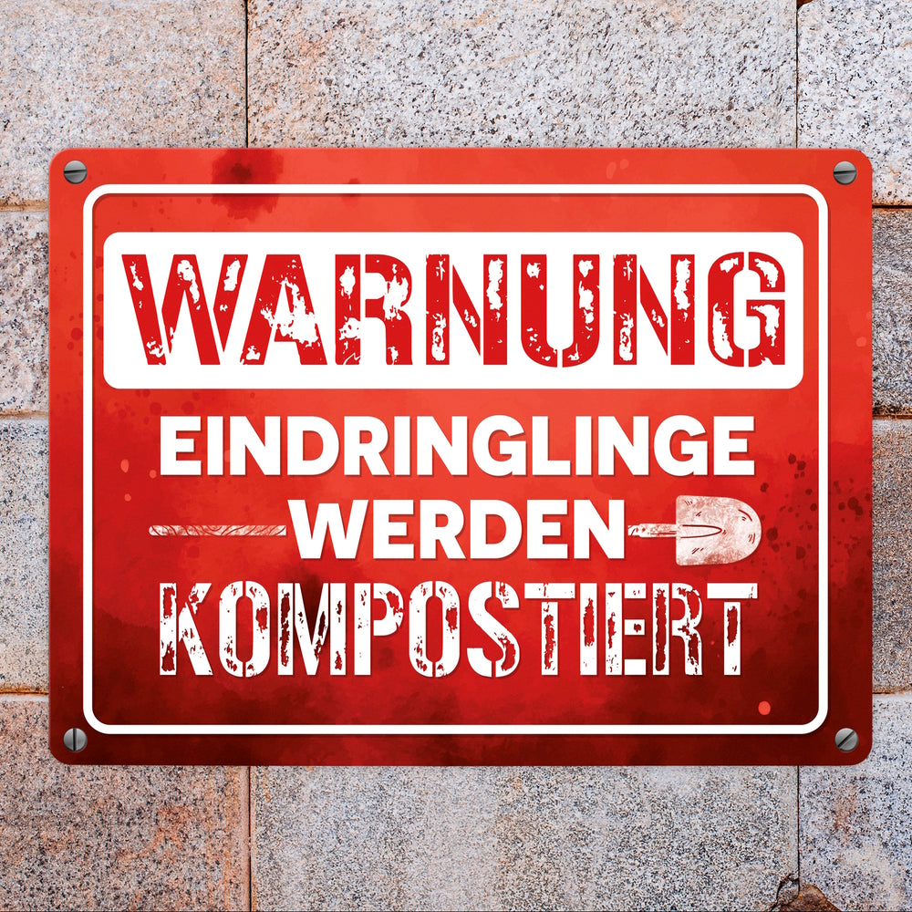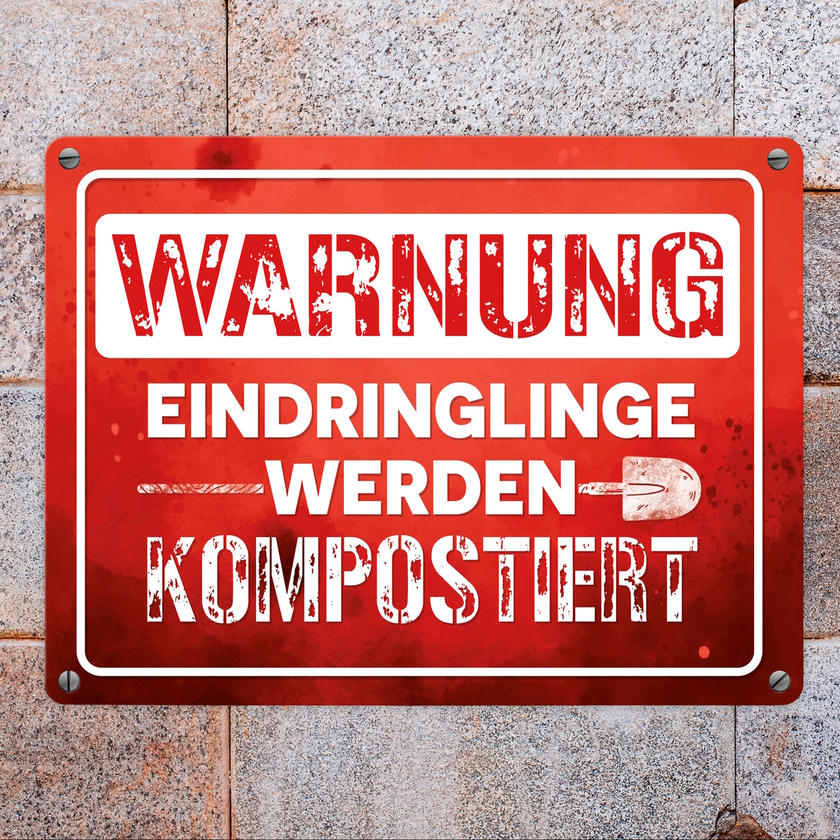 - 1x Warnung Eindringlinge werden kompostiert Metallschild in der gewählten Größe