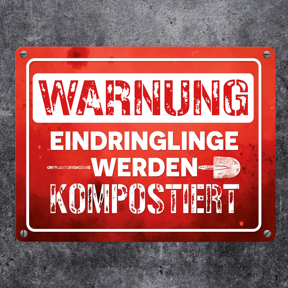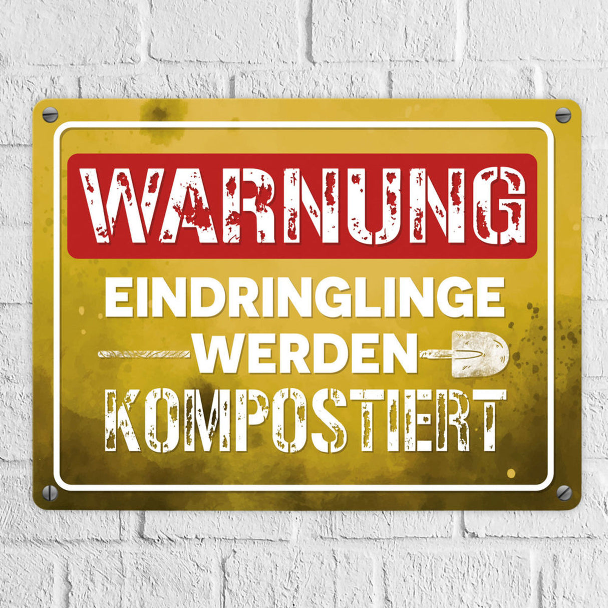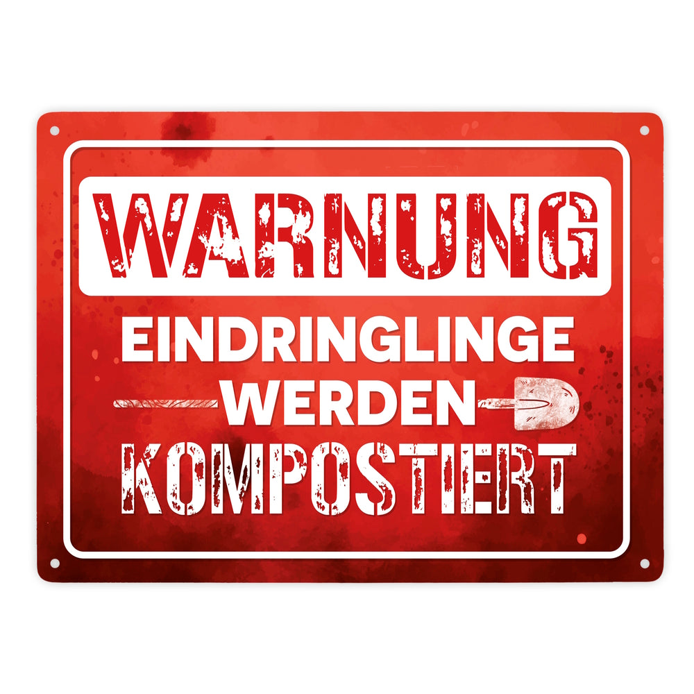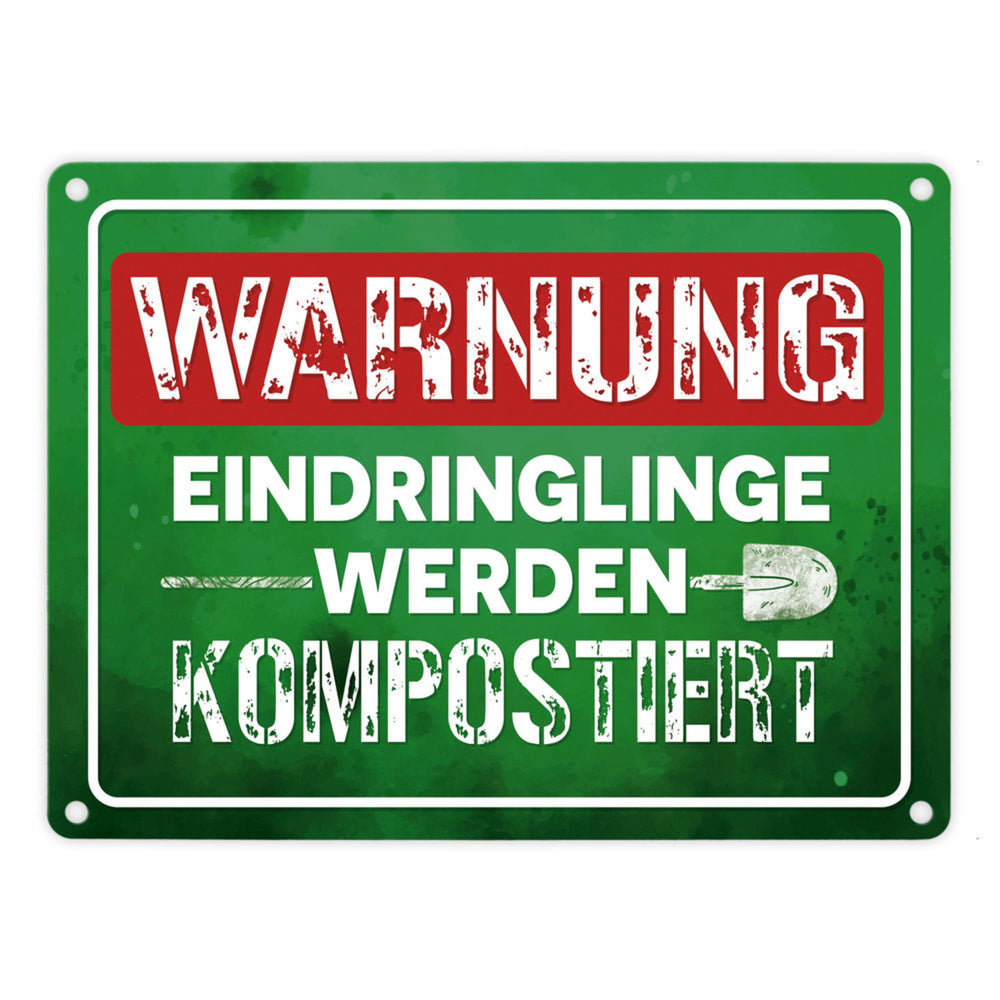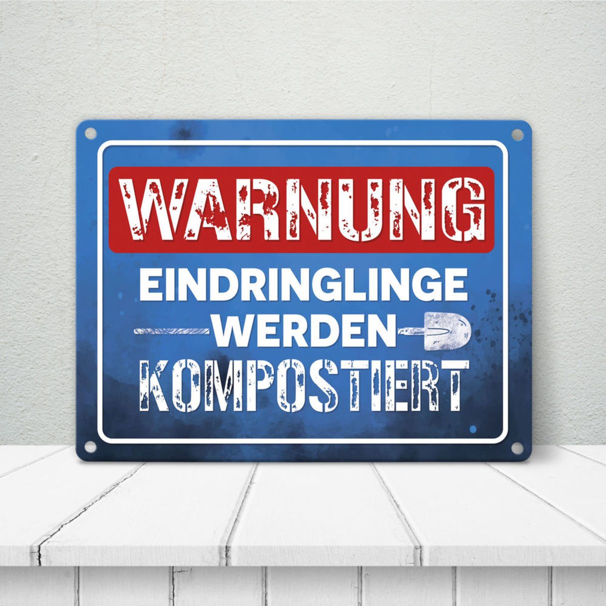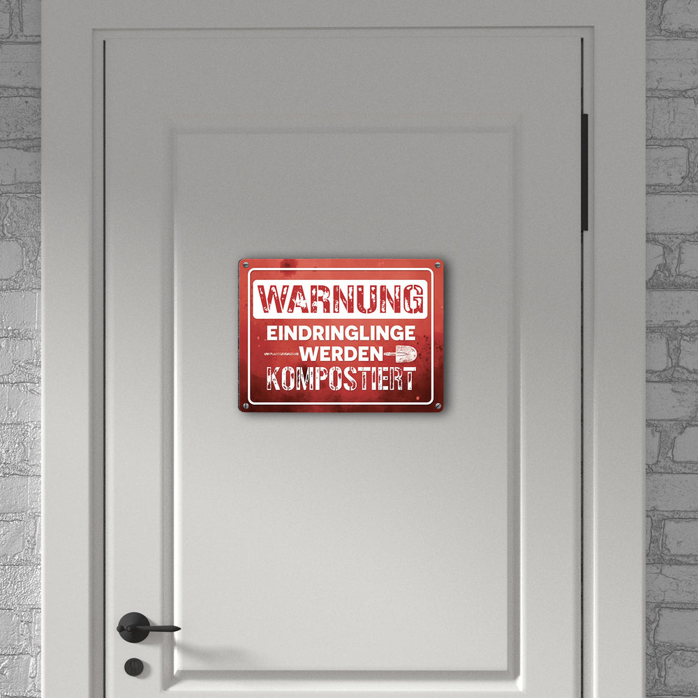 - 1x Warnung Eindringlinge werden kompostiert Metallschild in der gewählten Größe