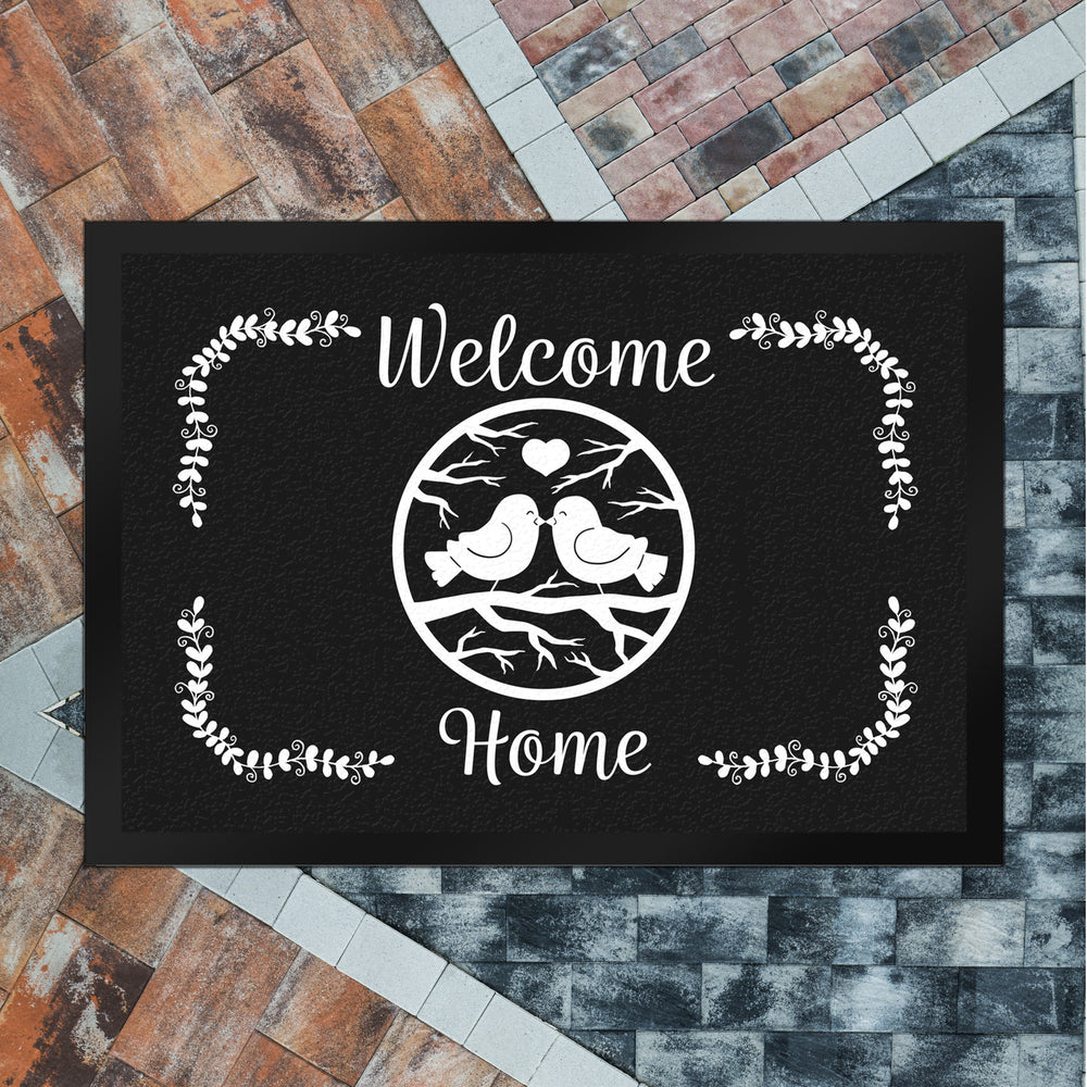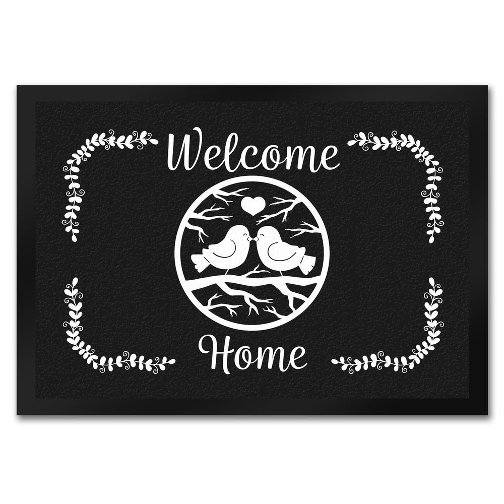 Welcome Home Fußmatte mit niedlichen Vögeln - 50x35 cm / schwarz ist auf Lager und wird versandt, sobald es wieder verfügbar ist