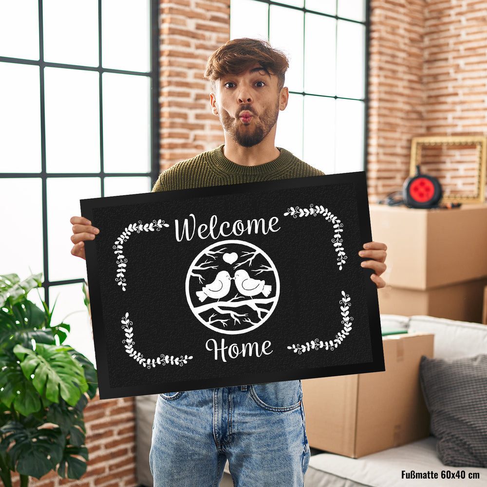 Welcome Home Fußmatte mit niedlichen Vögeln