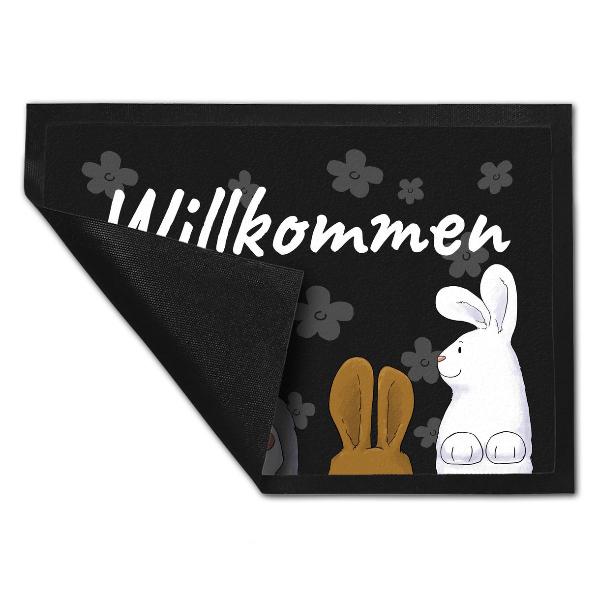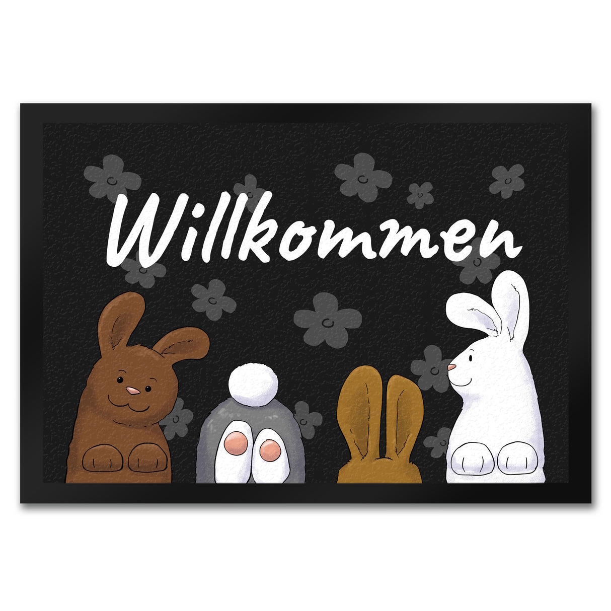Willkommen Fußmatte mit lustigem Hasen-Motiv