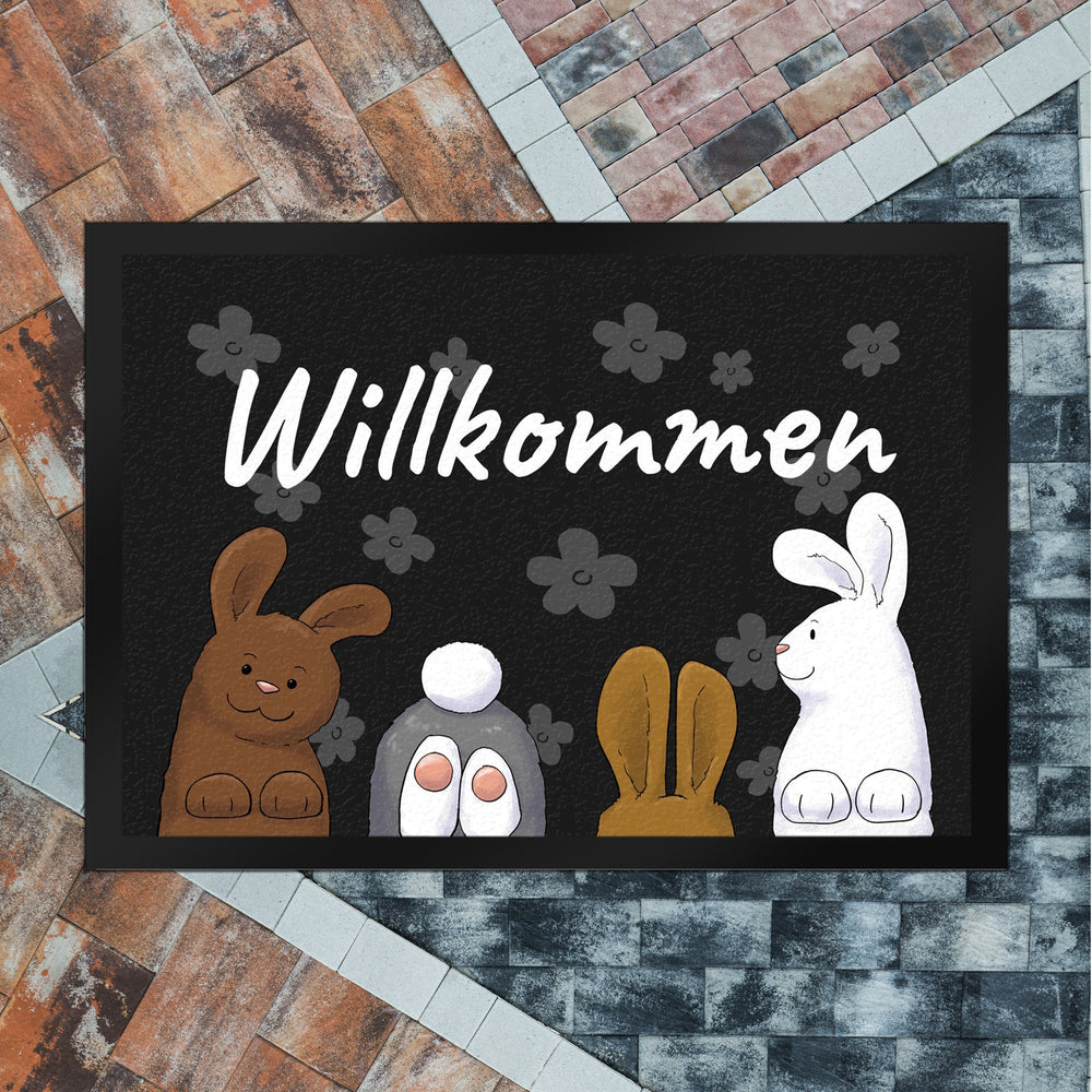 - Der Frühling kommt und auch Ostern steht bald vor der Tür. Hol dir deshalb diese süße Fußmatte mit seinen süßen und lustigen Hasen, um deinen Besuch passend begrüßen zu können.