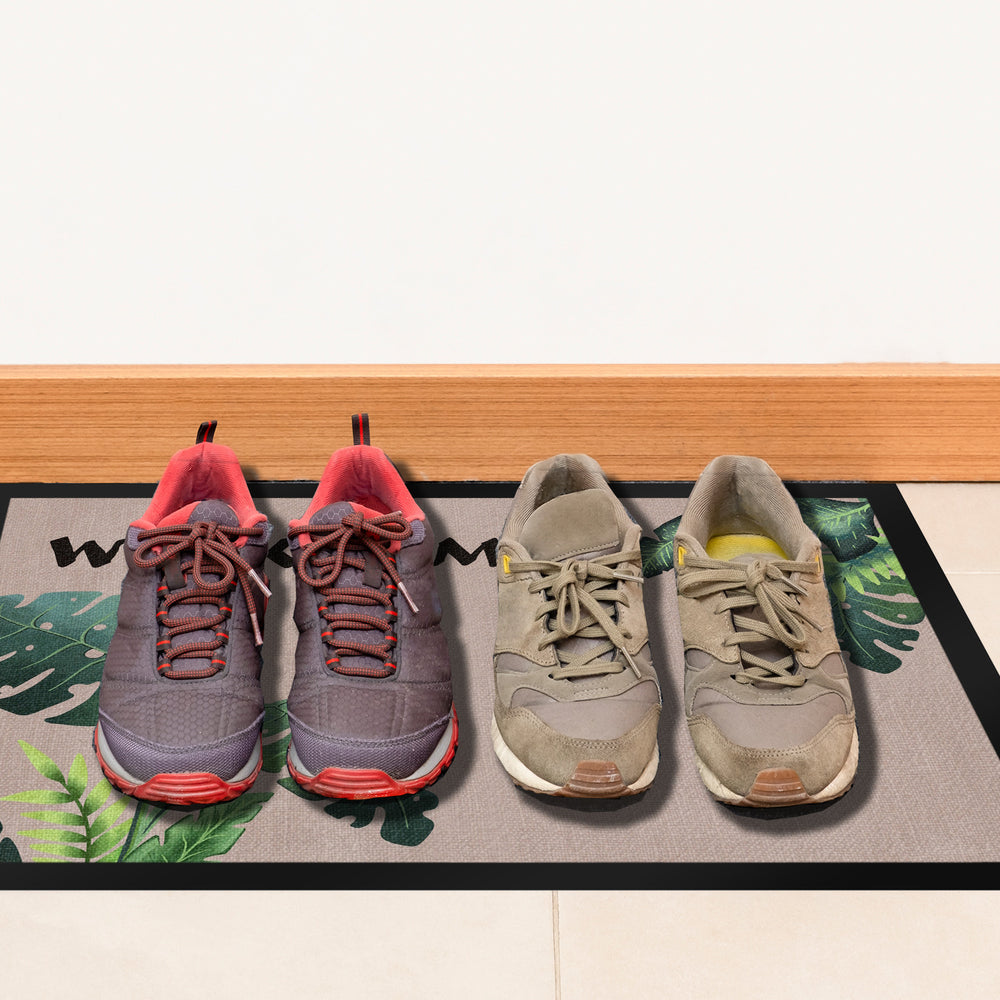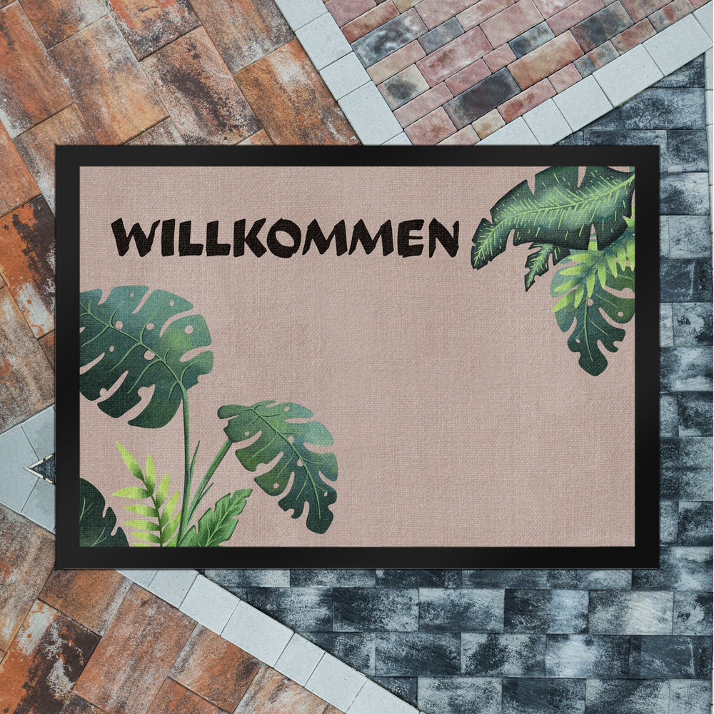 - 1x Willkommen Fußmatte mit tropischen Pflanzen in der gewählten Größe
