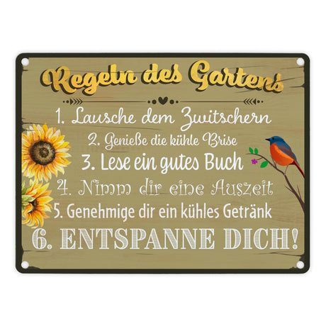 Gartenparadies Metallschild orange zum Thema Urlaub im Garten