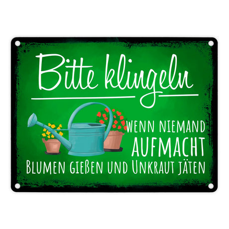 Bitte klingeln wenn niemand aufmacht Blumen gießen Unkraut jäten Metallschild in 15x20 cm