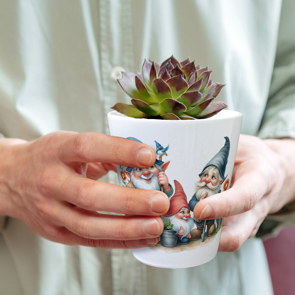 Schau mal, wer da grinst zwischen deinen Geranien! Der Gartenzwerg Blumentopf bringt mit einem Augenzwinkern Schwung in deine Grün-Oase. Vergiss langweilige Töpfe, unsere kleinen Kerle bei der Gartenarbeit sind echte Fensterbank-Partykracher!Diese farbenfrohen Freunde sind nicht nur Deko-Champions, sondern echte Stimmungsmacher. Ob beim Gießen oder Chillen, der Gartenzwerg Blumentopf passt auf deine Blumen auf wie ein bunter Bodyguard für Botanik.Aufgepasst: Die Fensterbrett-Modenschau beginnt! Mit dem Gartenzwerg Blumentopf wird jedes Fenster zum Catwalk der Natur. Lachende Zwerge, leuchtende Blüten – wer könnte da widerstehen? Hol dir die Gartenparty nach Hause!Mit Bodenloch zur Vermeidung von Staunässe. Der Blumentopf kann in der Spülmaschine gereinigt werden. Material: Keramik. Höhe ca. 10cm, Durchmesser oben ca. 9 cm. Hochwertiger Druck und glänzende Farben.Entdecken Sie den Gartenzwerg Blumentopf, der nicht nur Pflanzenliebhaber zum Schmunzeln bringt, sondern auch den grauesten Balkon in ein Märchenland verwandelt! Dieser kunterbunte Genosse ist der perfekte Begleiter für alle, die ihre Fensterbank in ein farbenfrohes Highlight verwandeln wollen. Aber Vorsicht: Er könnte beim Gießen mit anpacken wollen!Für wen ist dieser charmante Kerl geeignet? Nun, er ist der ideale Kandidat für Gartenenthusiasten mit einer Prise Humor, Wohnungsinhaber, die urbanes Grün schaffen möchten, und natürlich für all jene, die ihre Botanik mit einer Prise Persönlichkeit versehen wollen.Stellen Sie ihn auf Ihr Fensterbrett und beobachten Sie, wie die kleinen Gartenzwerge ihr Unwesen treiben und zugleich Ihre grünen Freunde behüten. Ob Basilikum, Kresse oder eine kühne Kaktee – dieser Blumentopf gibt jedem Gewächs einen heiteren Rahmen!Und als Geschenk? Der Gartenzwerg Blumentopf ist ein witziger Hingucker für jeden Anlass. Ob Geburtstag, Einzugsparty oder als kleine Aufmunterung für den Bürokollegen – mit diesem Gesellen verschenken Sie nicht nur einen Topf, sondern eine Portion Freude!Außerdem haben Sie eine wunderbare Geschichte zu erzählen: Wie Gartenzwerge aus ihrem verzauberten Reich auszogen, um die Welt der Fensterbänke zu erobern. Mit einem Augenzwinkern und einer Prise Magie wird dieser Blumentopf sicher ein Lächeln auf die Gesichter Ihrer Liebsten zaubern.