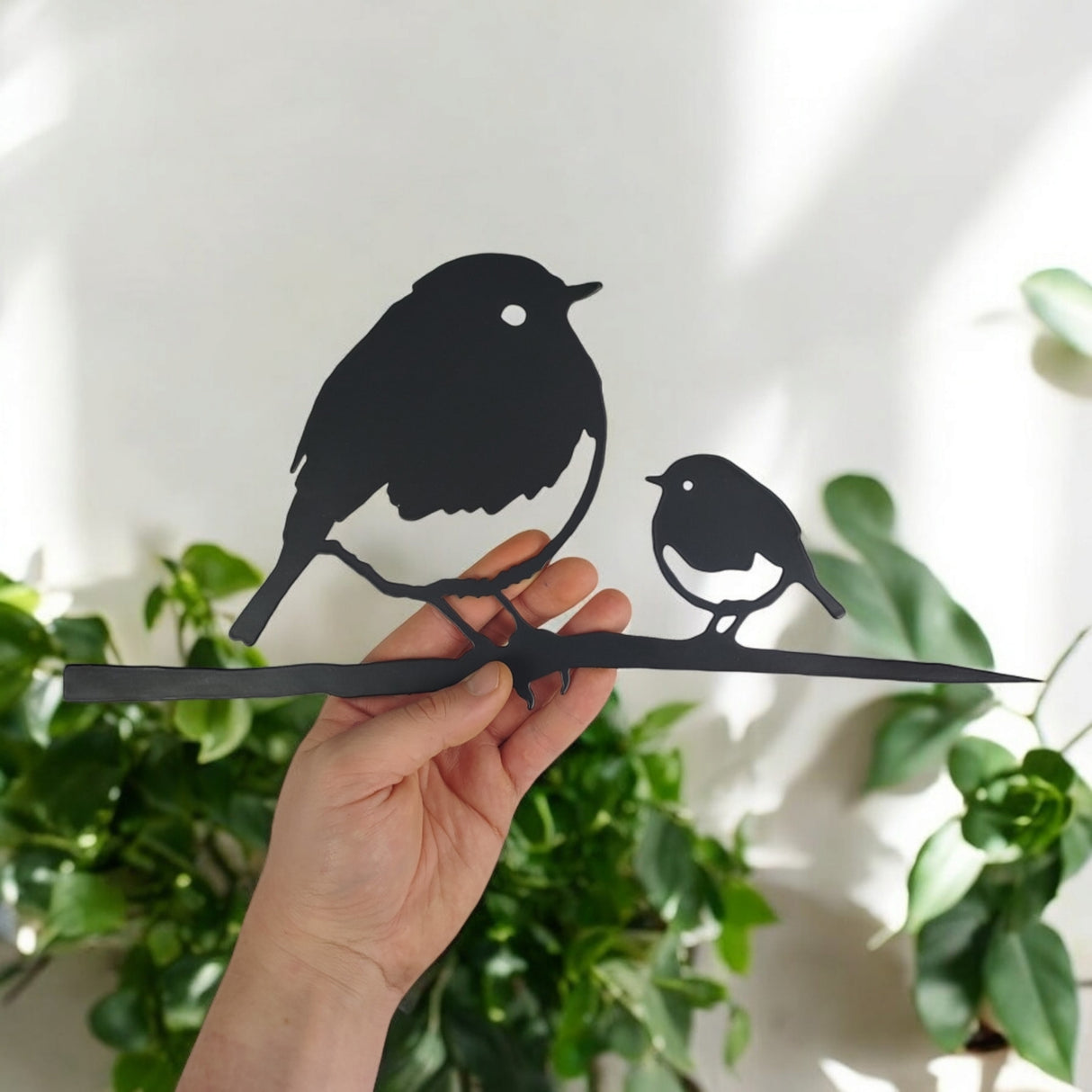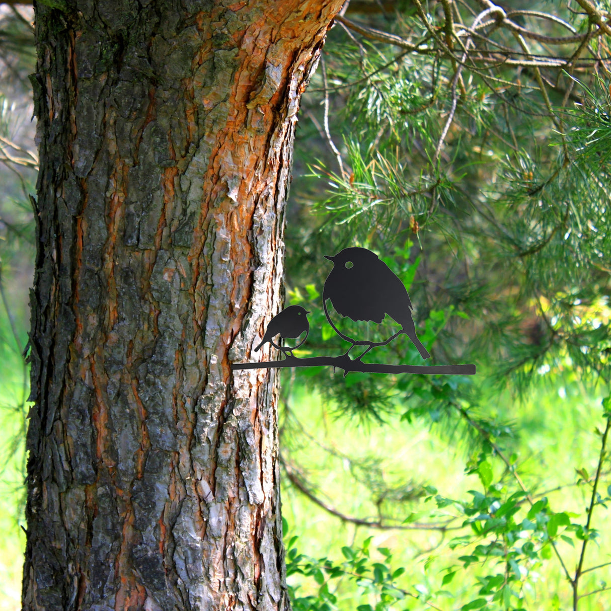 - Unser Gartenstecker aus schwarzem Metall zeigt zwei charmante Kohlmeisen auf einem Ast - eine große und eine kleine. Einfach zu installieren: Schlagen Sie die Spitze in einen Baum oder andere Oberflächen! Robust und wetterfest, hält dieser Tier-Baumstecker jeden Wetterbedingungen stand. Ein echter Hingucker in jeder Outdoor-Deko!