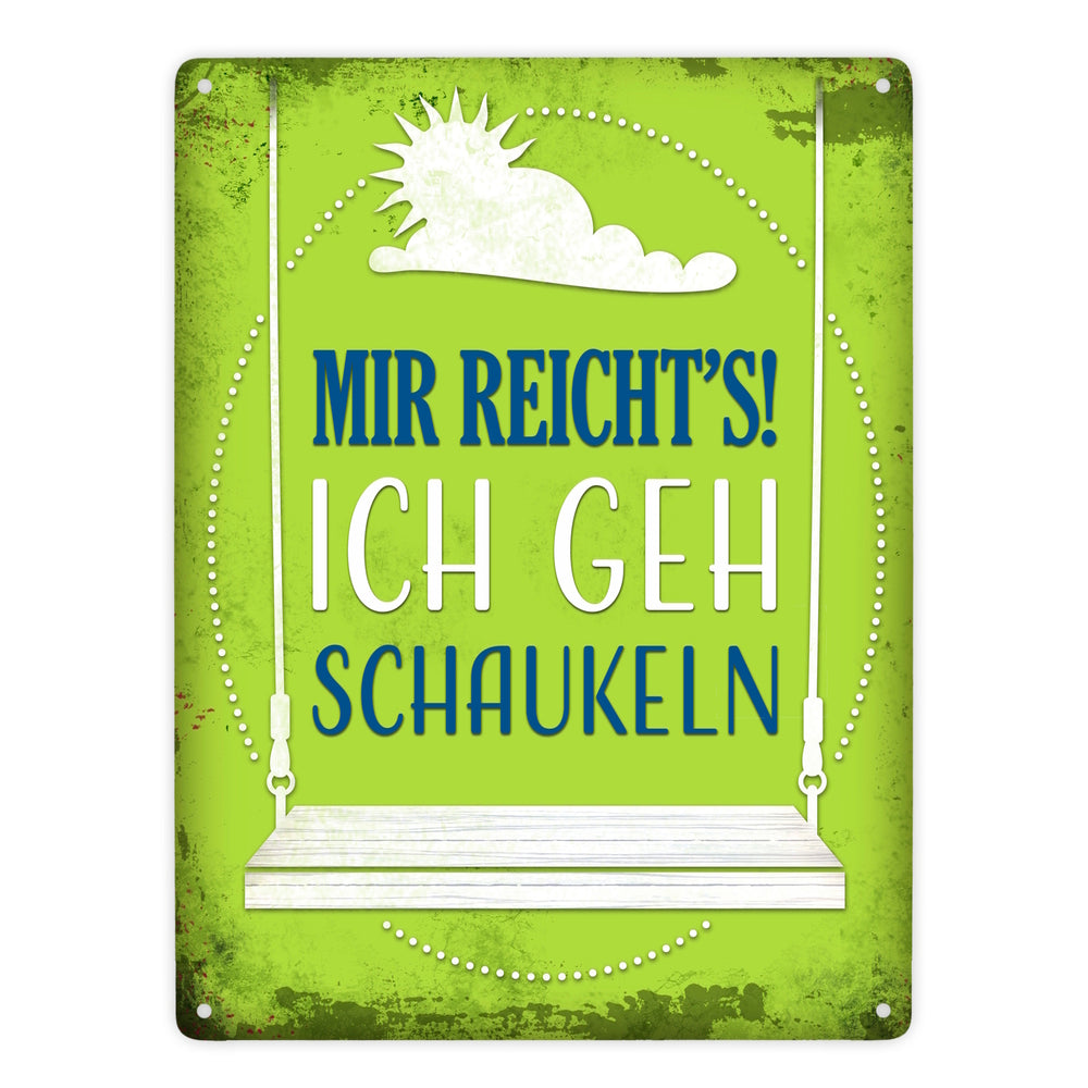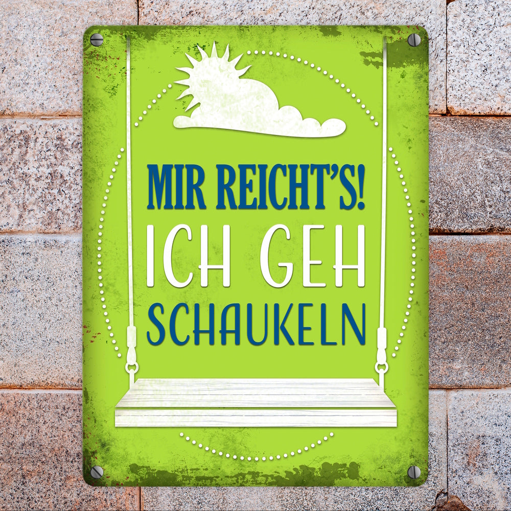 • 1x Metallschild mit Spruch: Mir reicht's! Ich geh schaukeln in der gewählten Größe