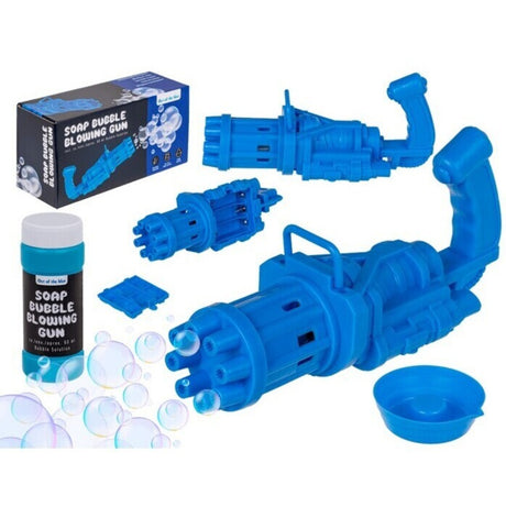 Maschinengewehr Seifenblasenpistole in blau mit Seifenlauge und Schale
