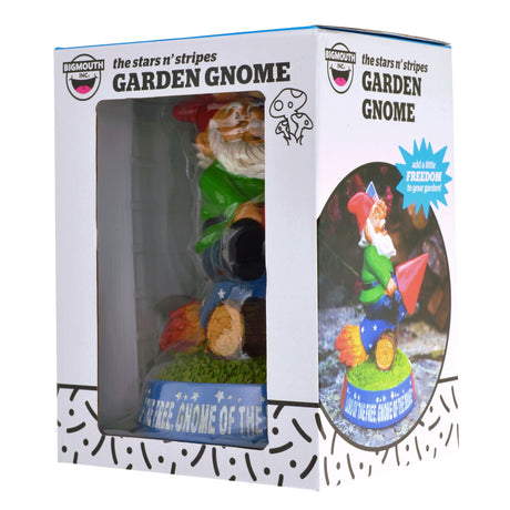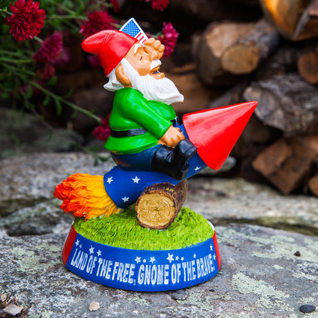 Patriotischer Gartenzwerg mit Rakete und USA Flagge
