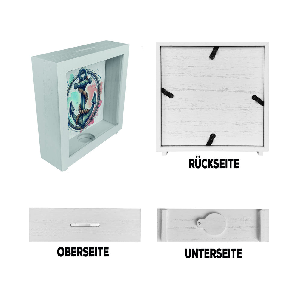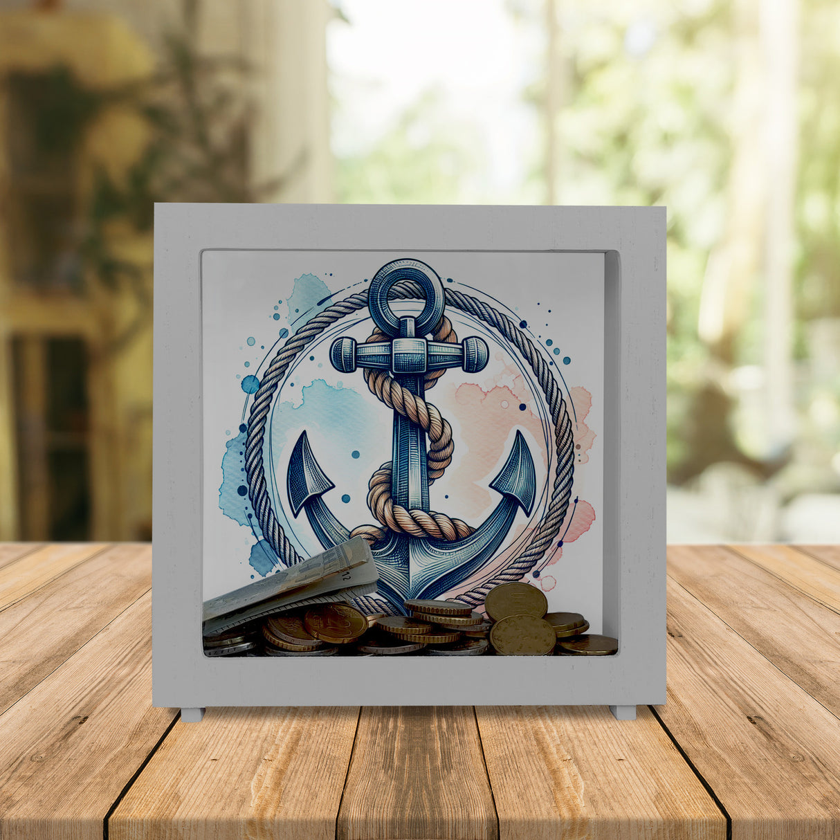 - 1x Anker mit Seil Spardose in der gewählten Ausführung