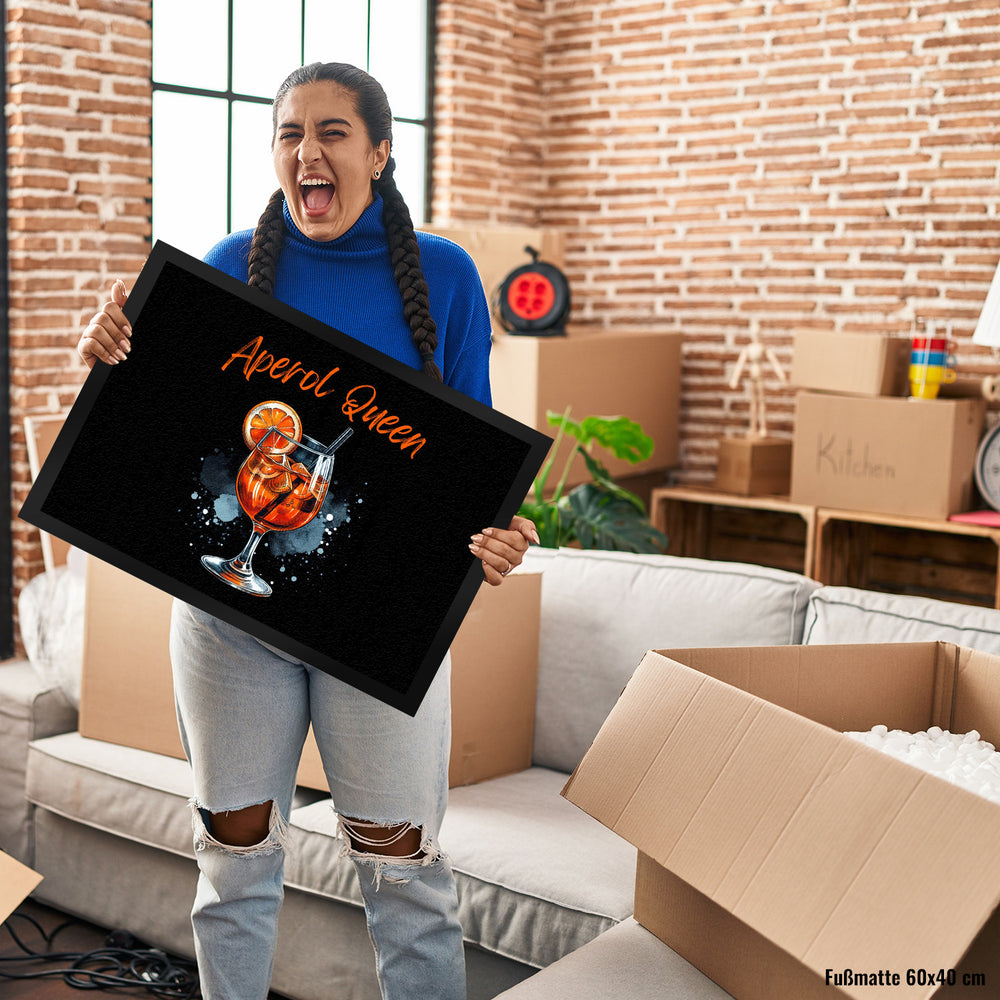 - Hat der Sommer in Ihrem Flur Einzug gehalten? Dann ist es die "Aperol Queen Fußmatte" – das perfekte Accessoire, um die Bar-Atmosphäre zu Ihnen nach Hause zu mixen. Nicht nur saugfähig, sondern auch ein echter Blickfang! Cheers auf schmutzfreie Böden und erfrischende Willkommensgrüße!