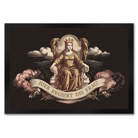 Königin auf Thron - Hier regiert die Frau Fußmatte in 35x50 cm