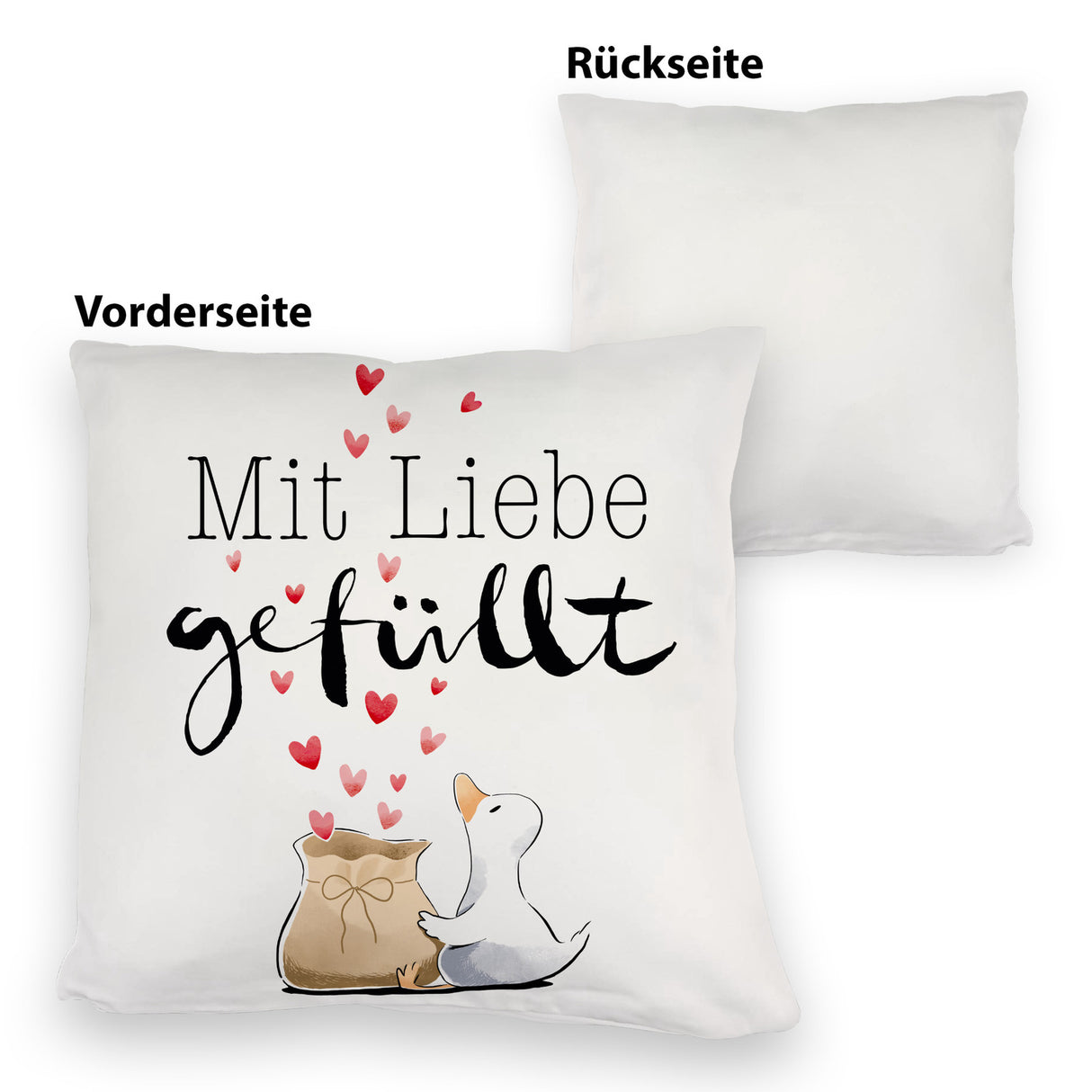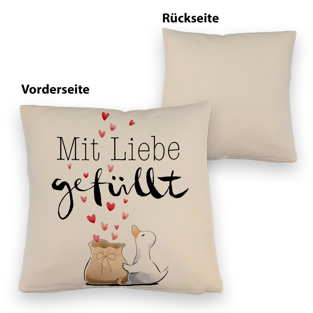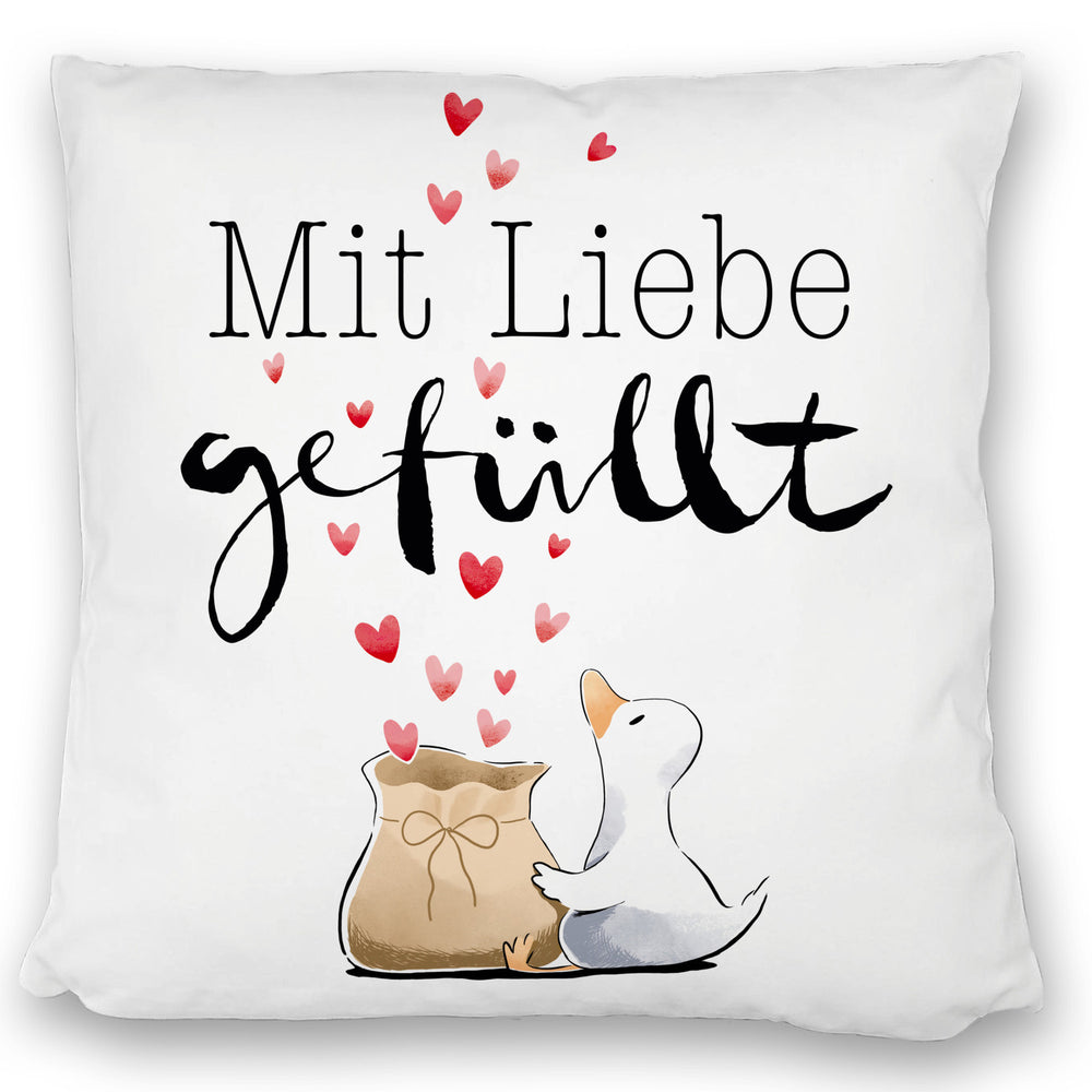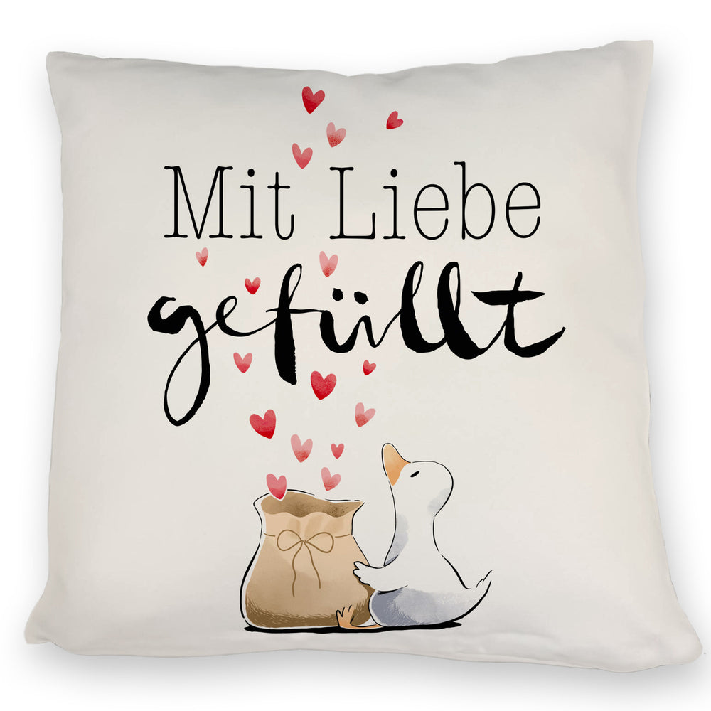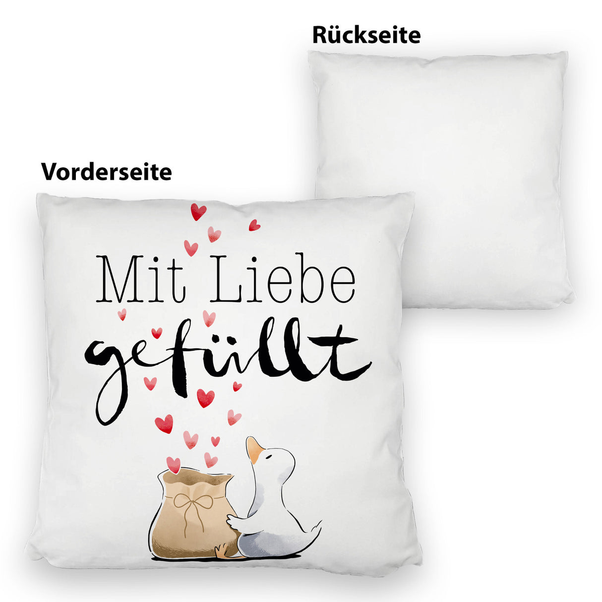 Ente Kissen mit Spruch Mit Liebe gefüllt