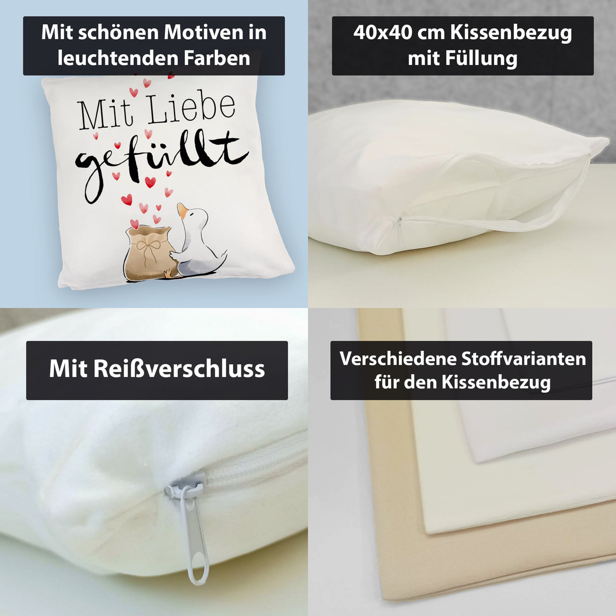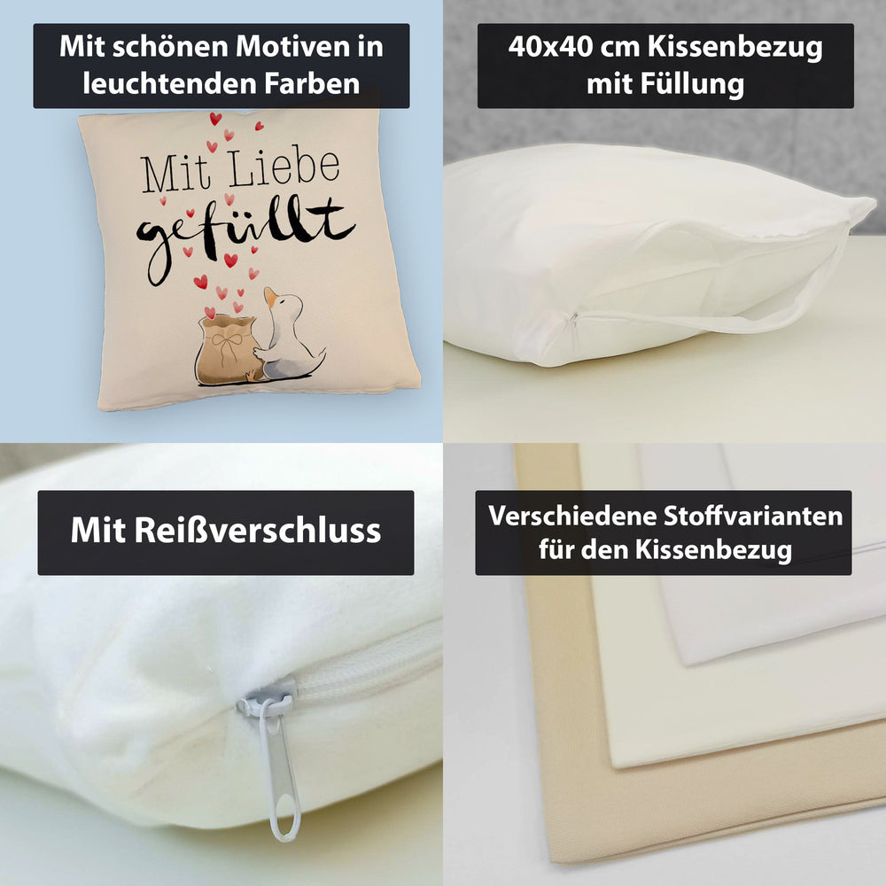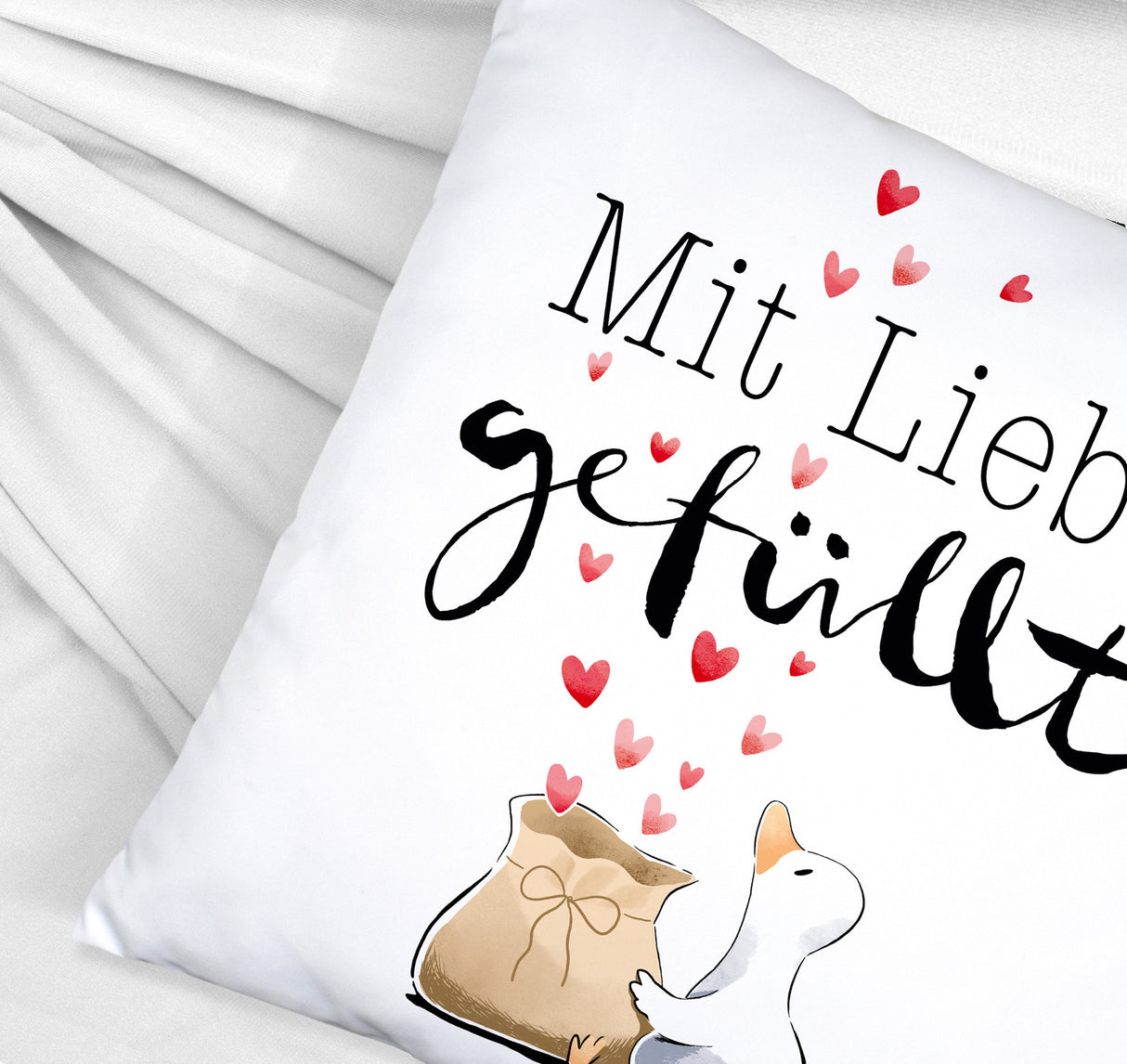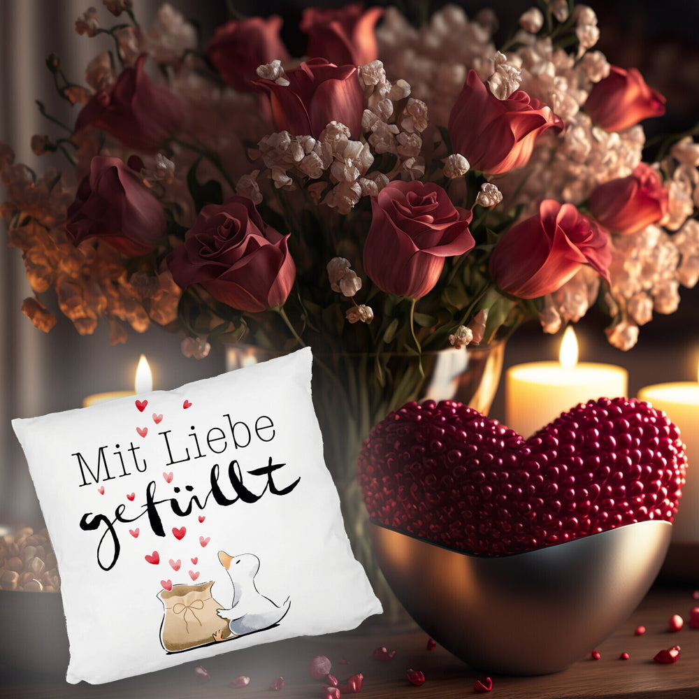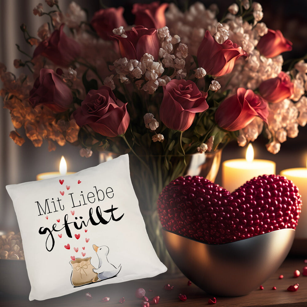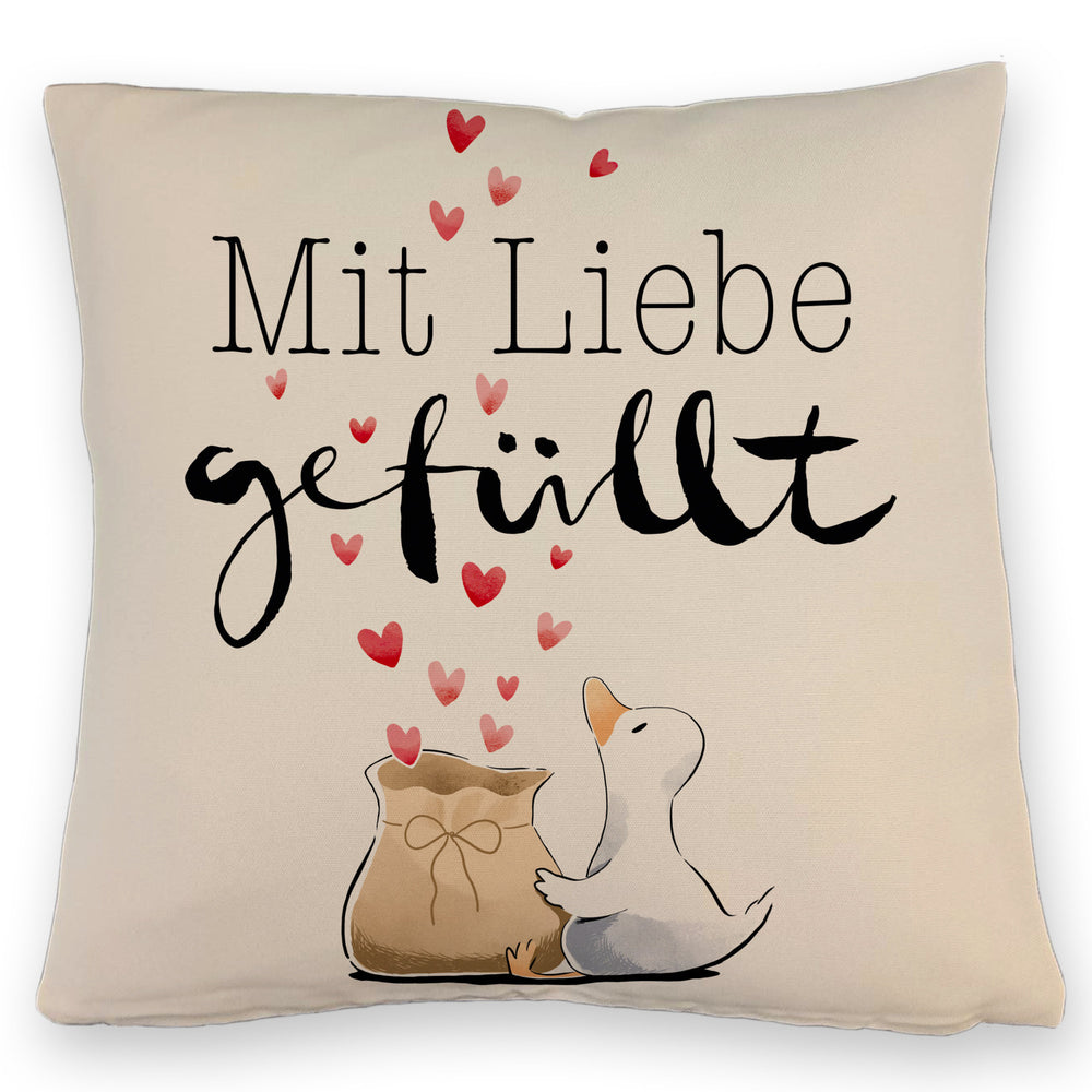 Ente Kissen mit Spruch Mit Liebe gefüllt