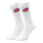 - Unsere epicsocks "Fast Food Fun Donut Socken" sind ein echter Hingucker! Diese weißen Tennissocken sind mit einem frechen Cartoon-Donut verziert, der mit rosa Zuckerguss und bunten Streuseln geschmückt ist. Der bedruckte Schaft im Knöchelbereich und ein lustiger Spruch machen diese Socken zum ultimativen Spaß für deine Füße!