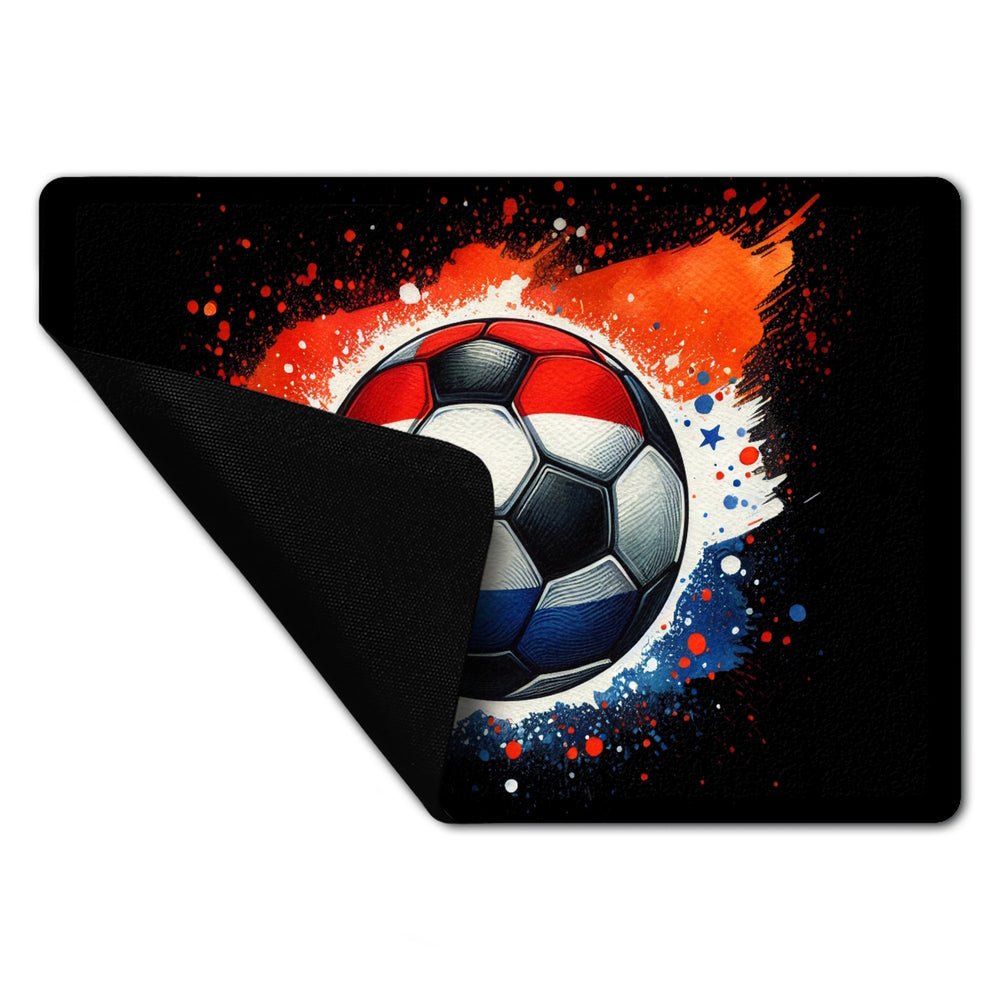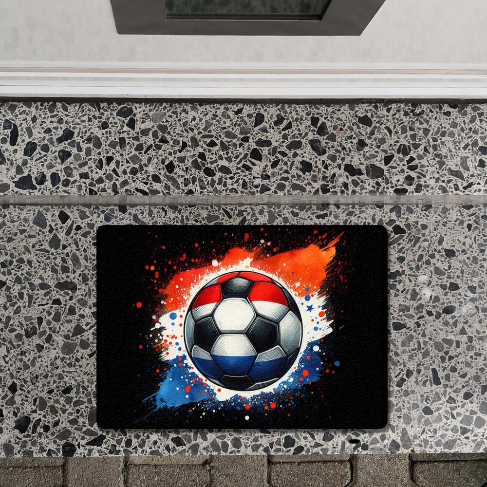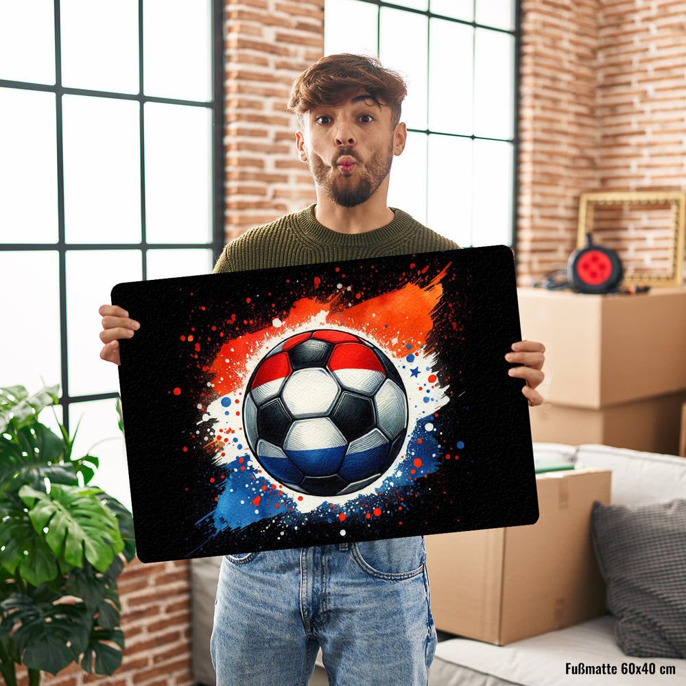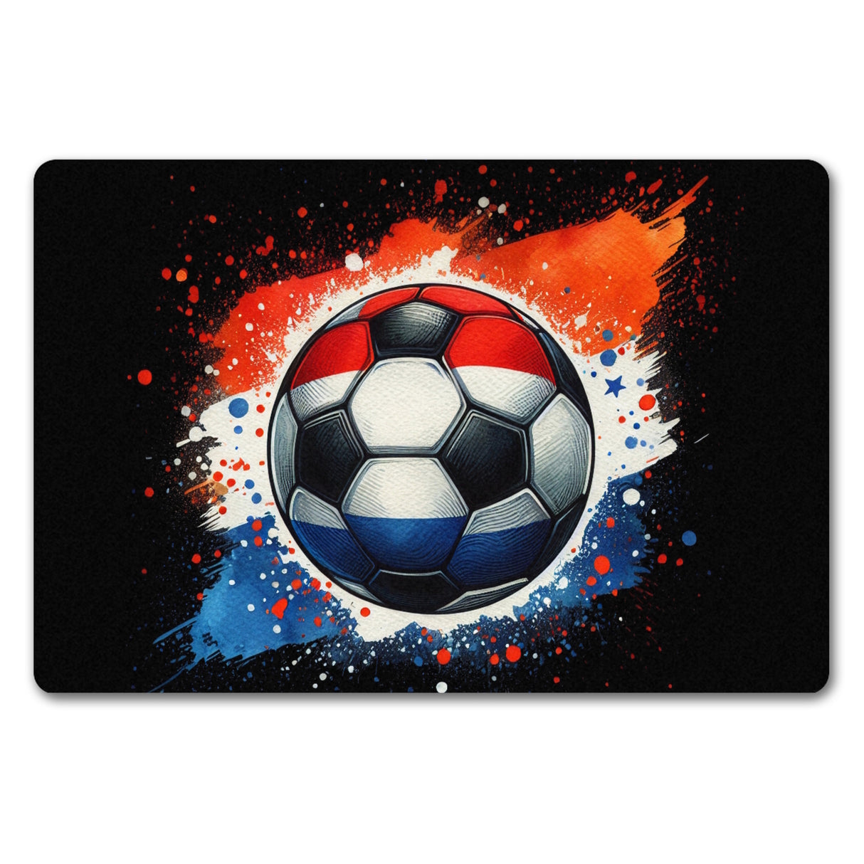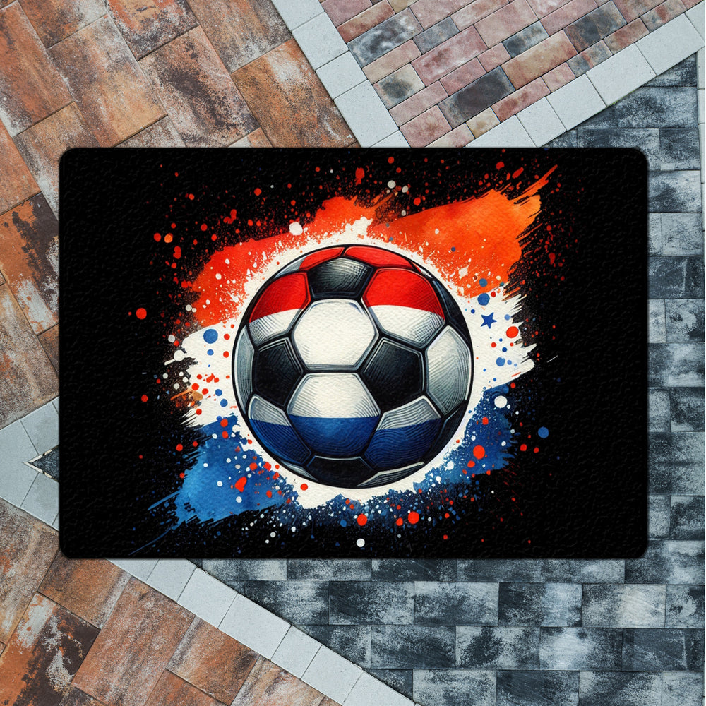 - Fußballfans aufgepasst! Unsere Niederlande Fußmatte kombiniert die Landesflagge mit einem coolen Fußball-Motiv. Zeig deine Leidenschaft für Oranje und die EM 2024 schon an deiner Tür!