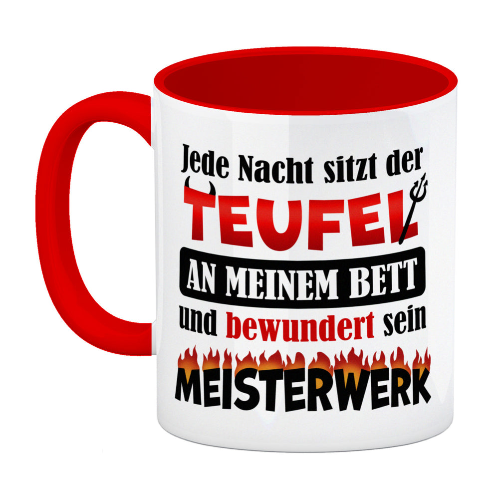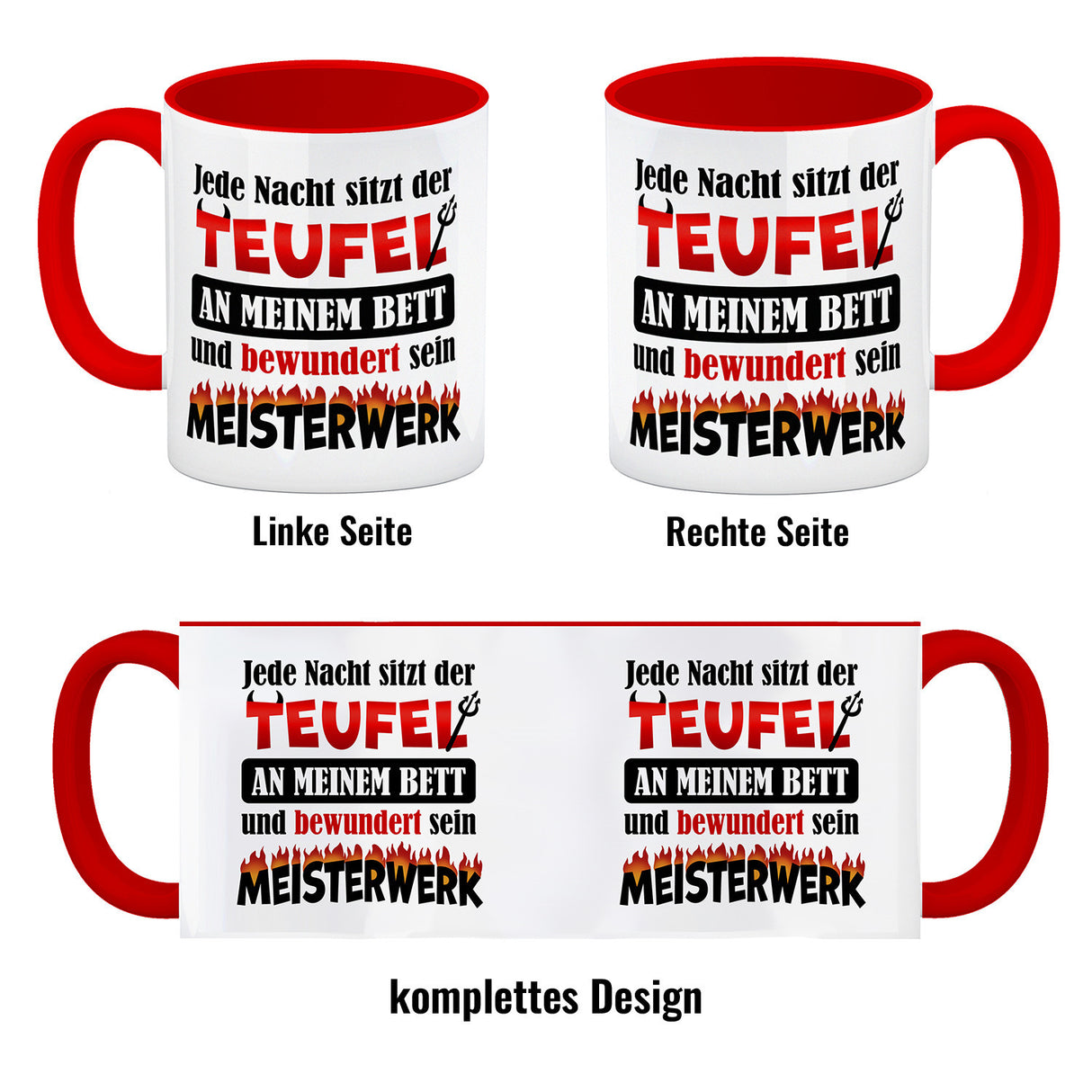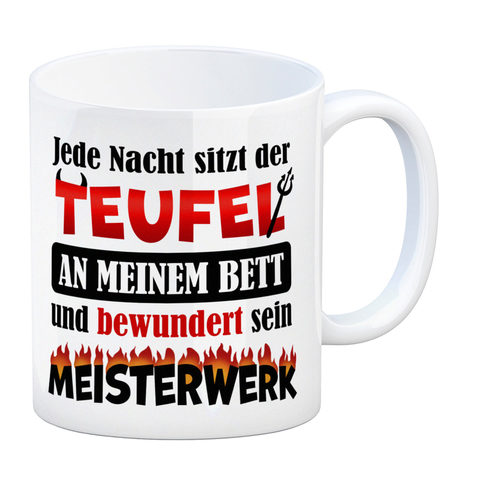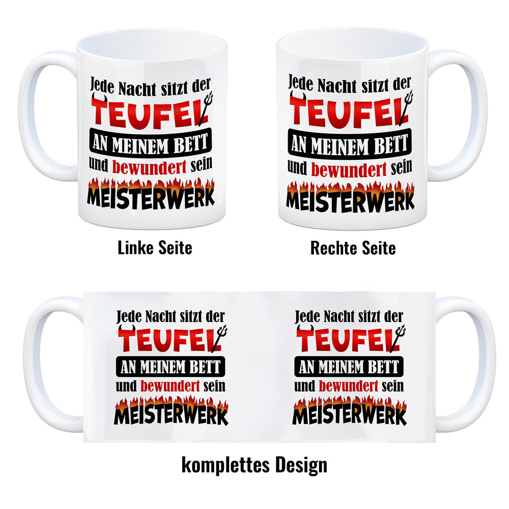 - 1x Jede Nacht sitzt der Teufel an meinem Bett… Kaffeebecher in der gewählten Ausführung