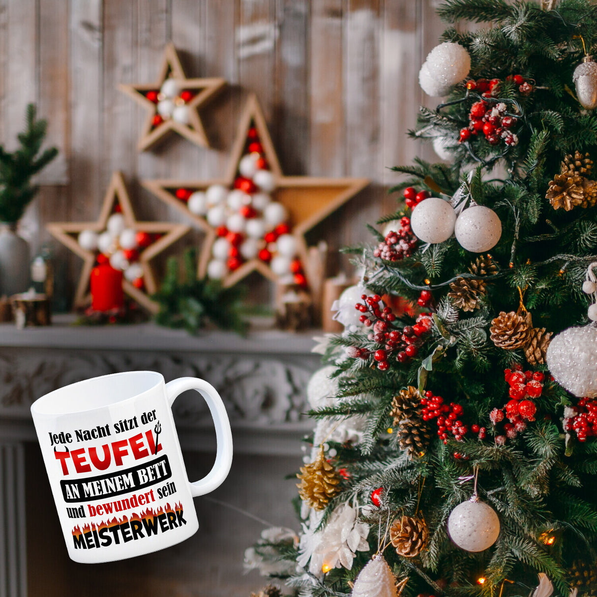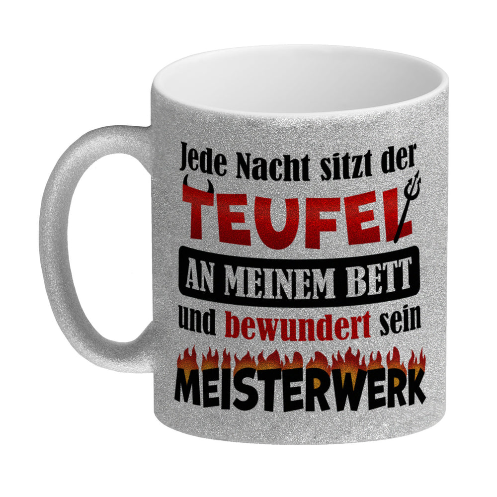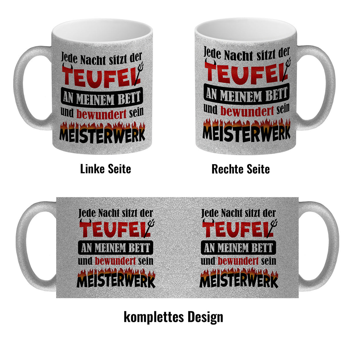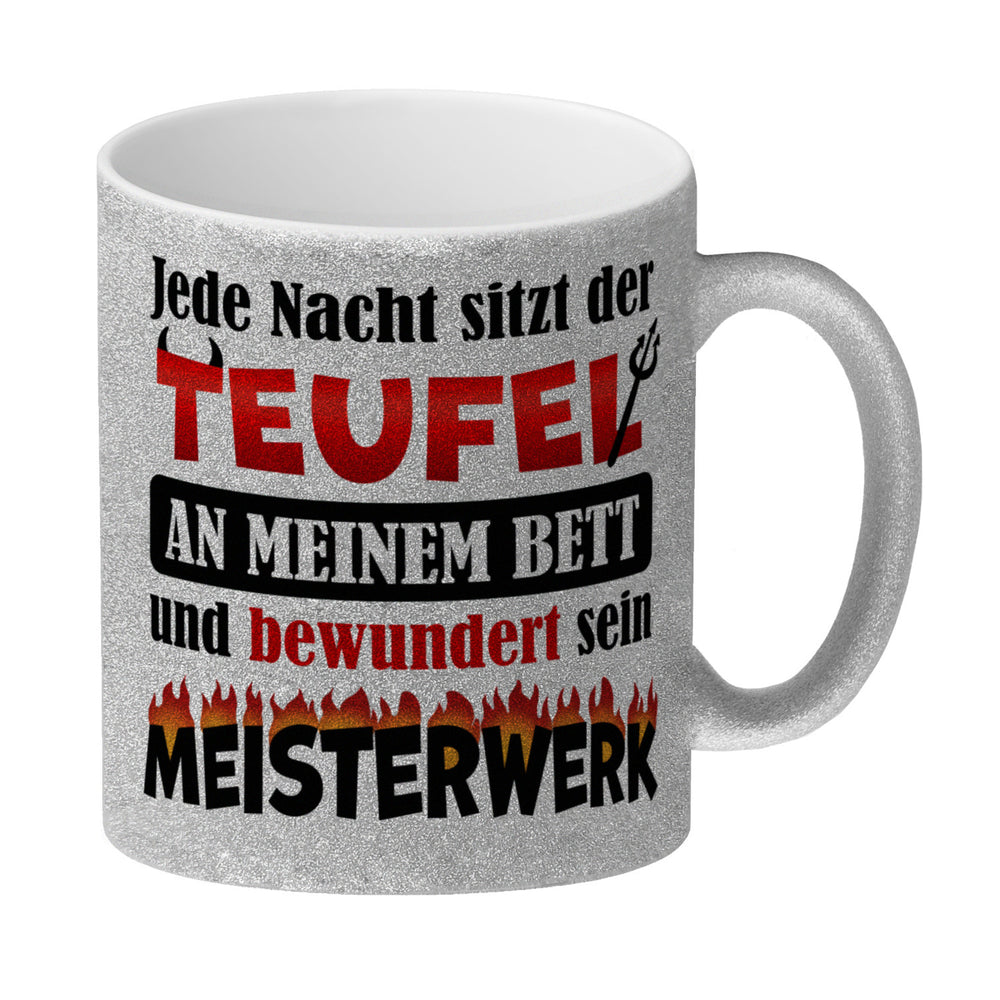 - 1x Jede Nacht sitzt der Teufel an meinem Bett… Kaffeebecher in der gewählten Ausführung