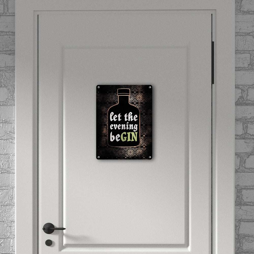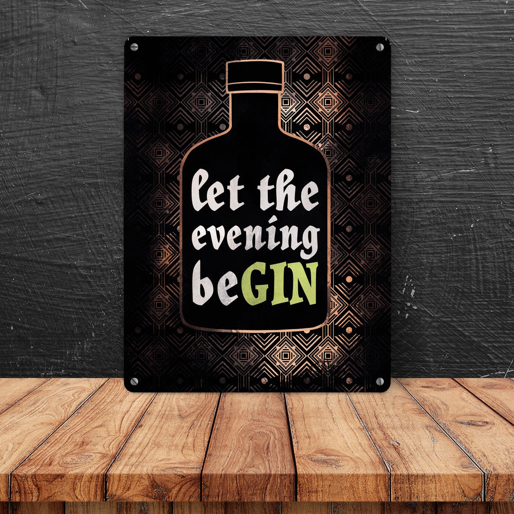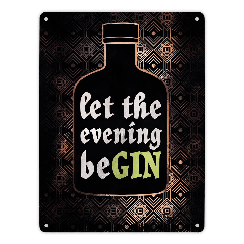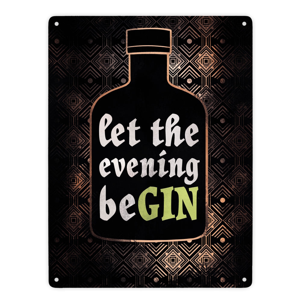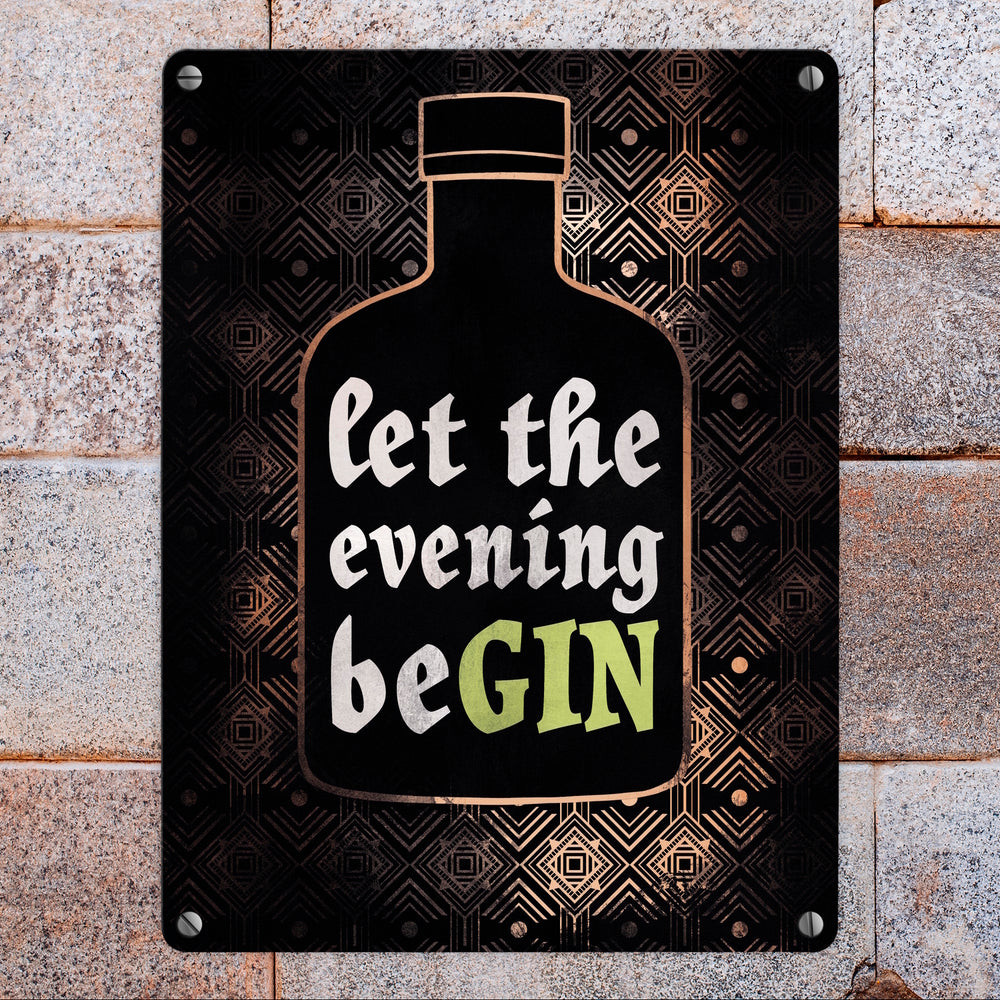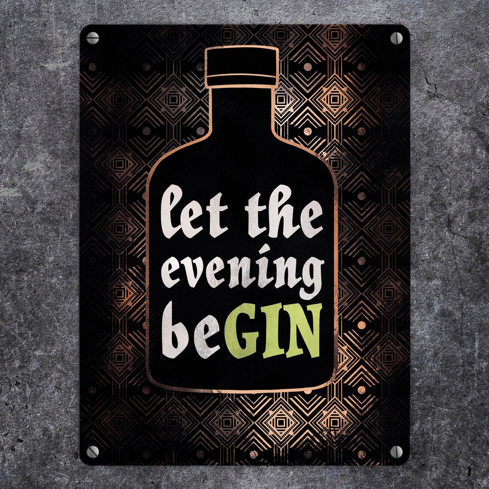 Gin Metallschild mit Alkohol Motiv und Spruch: Let the evening be gin