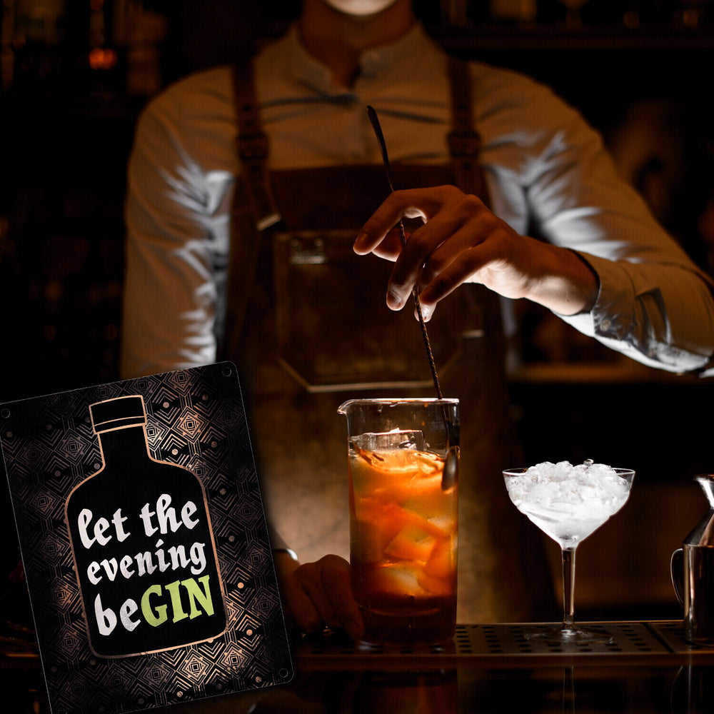 - 1x Let the evening beGIN Metallschild für die Bar in der gewählten Größe