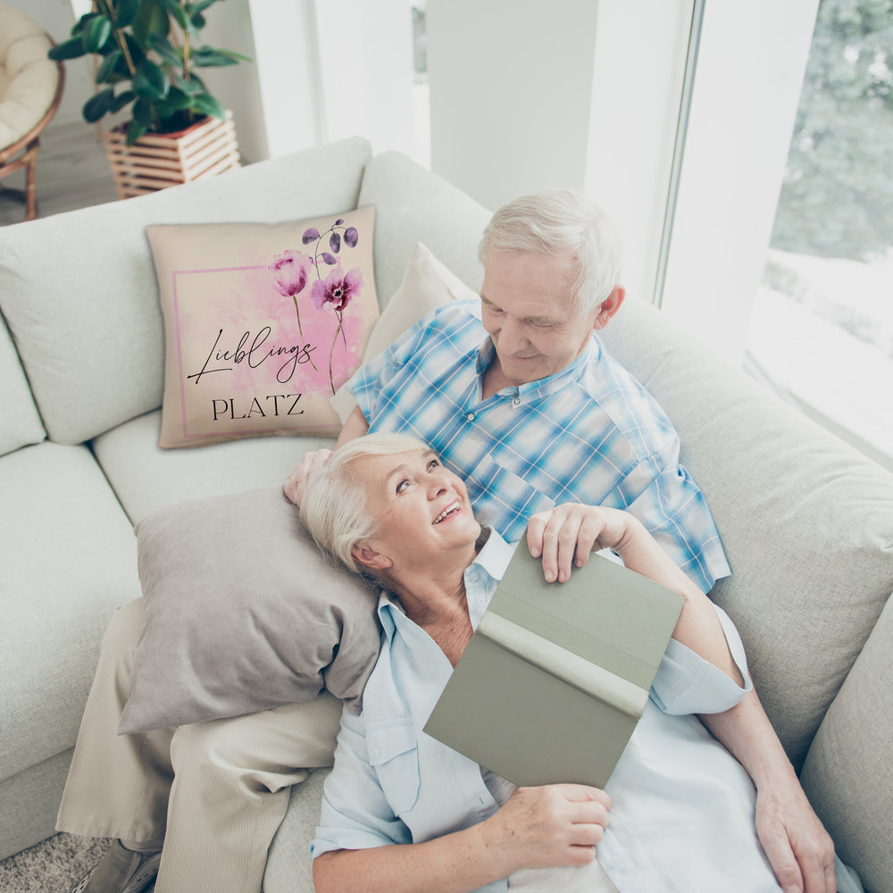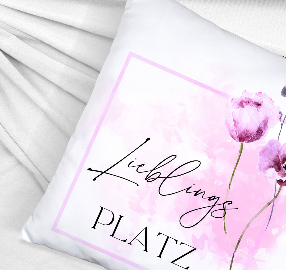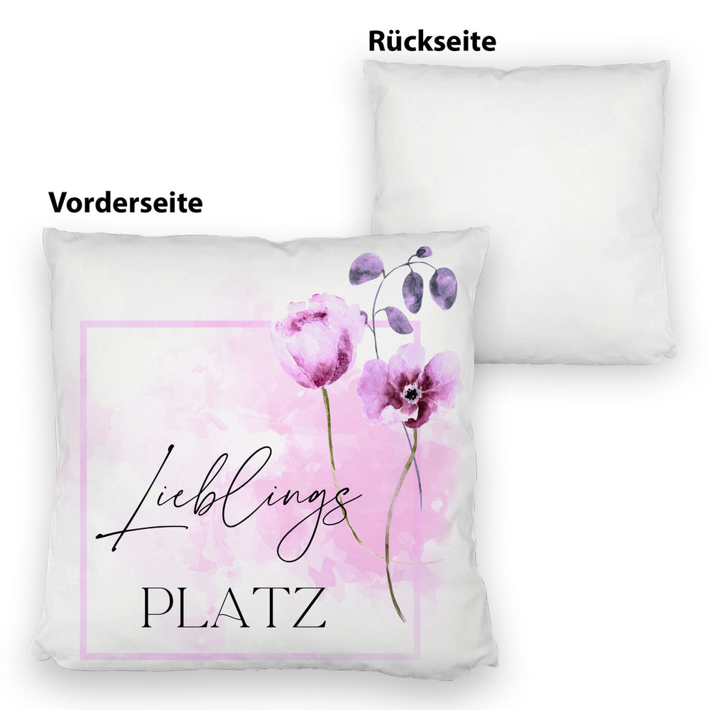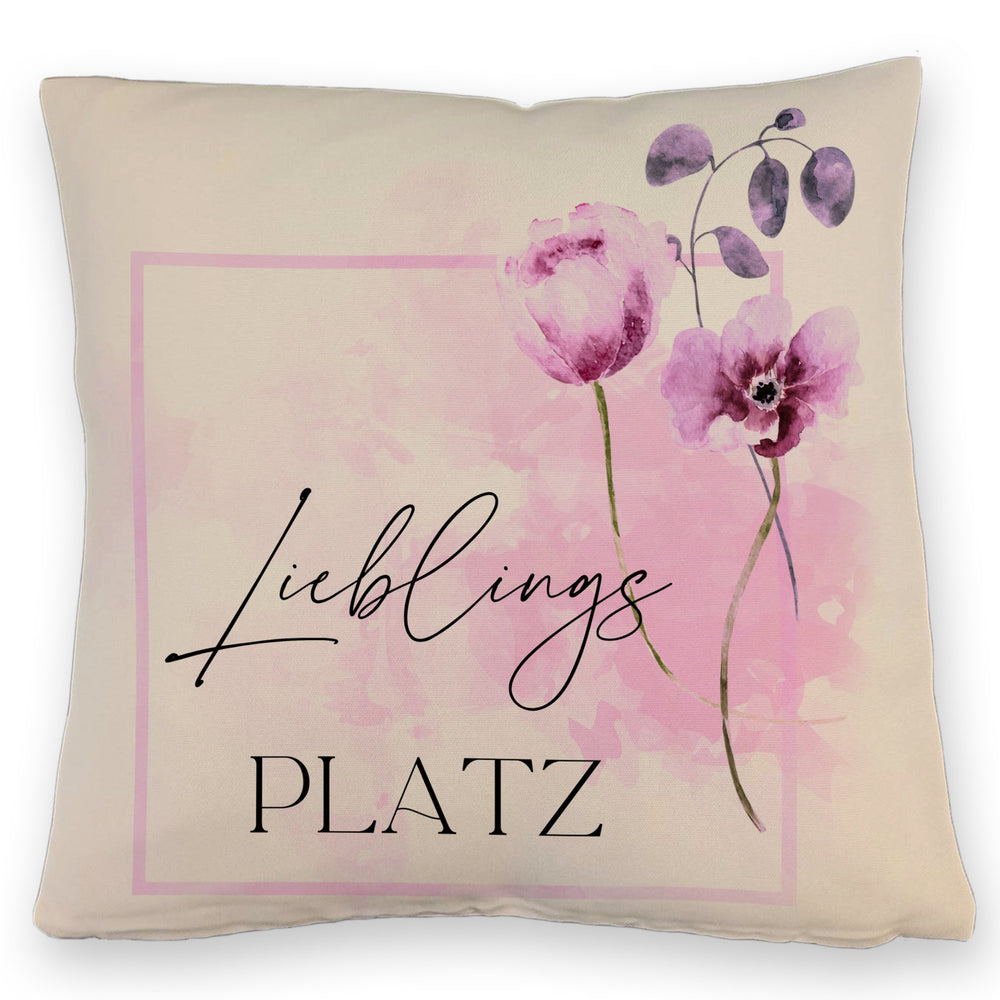 Lieblingsplatz Kissen mit Blumen Motiv für Freunde zum Geburtstag