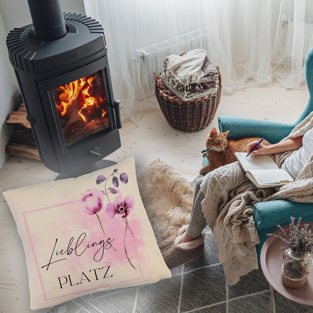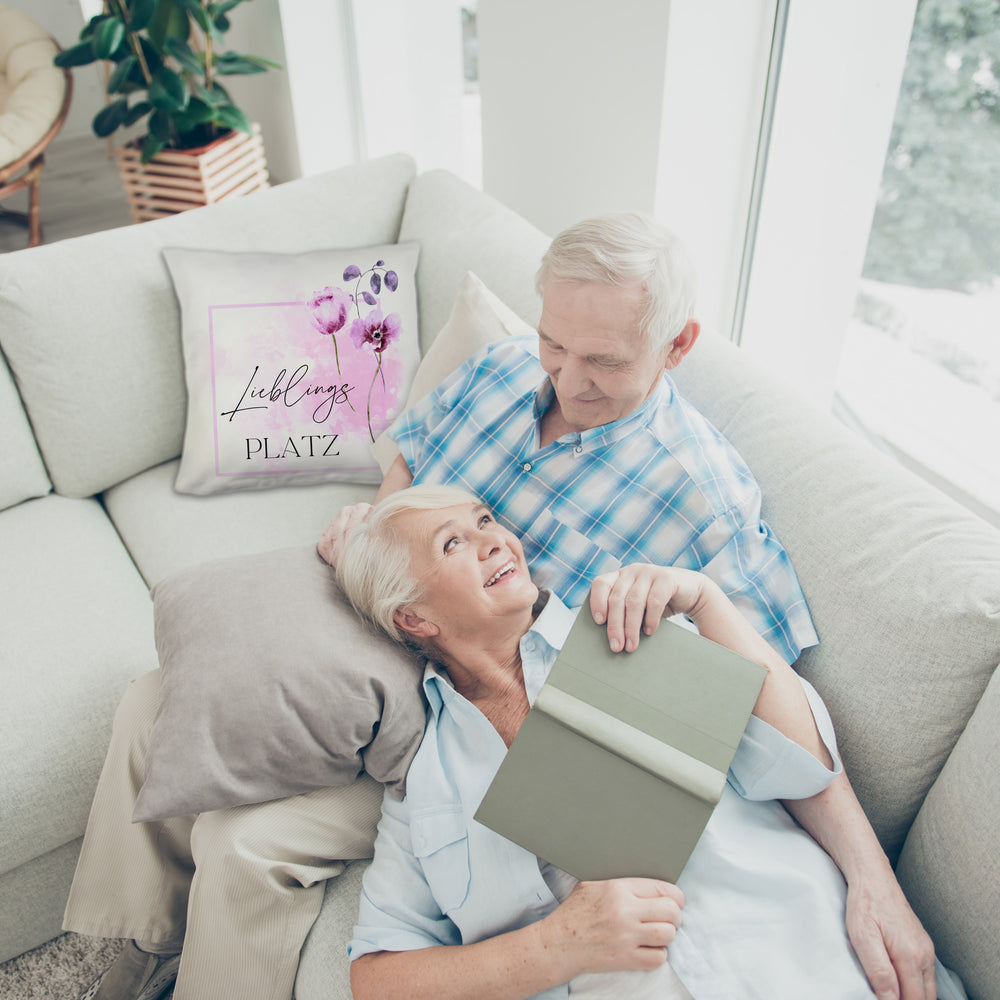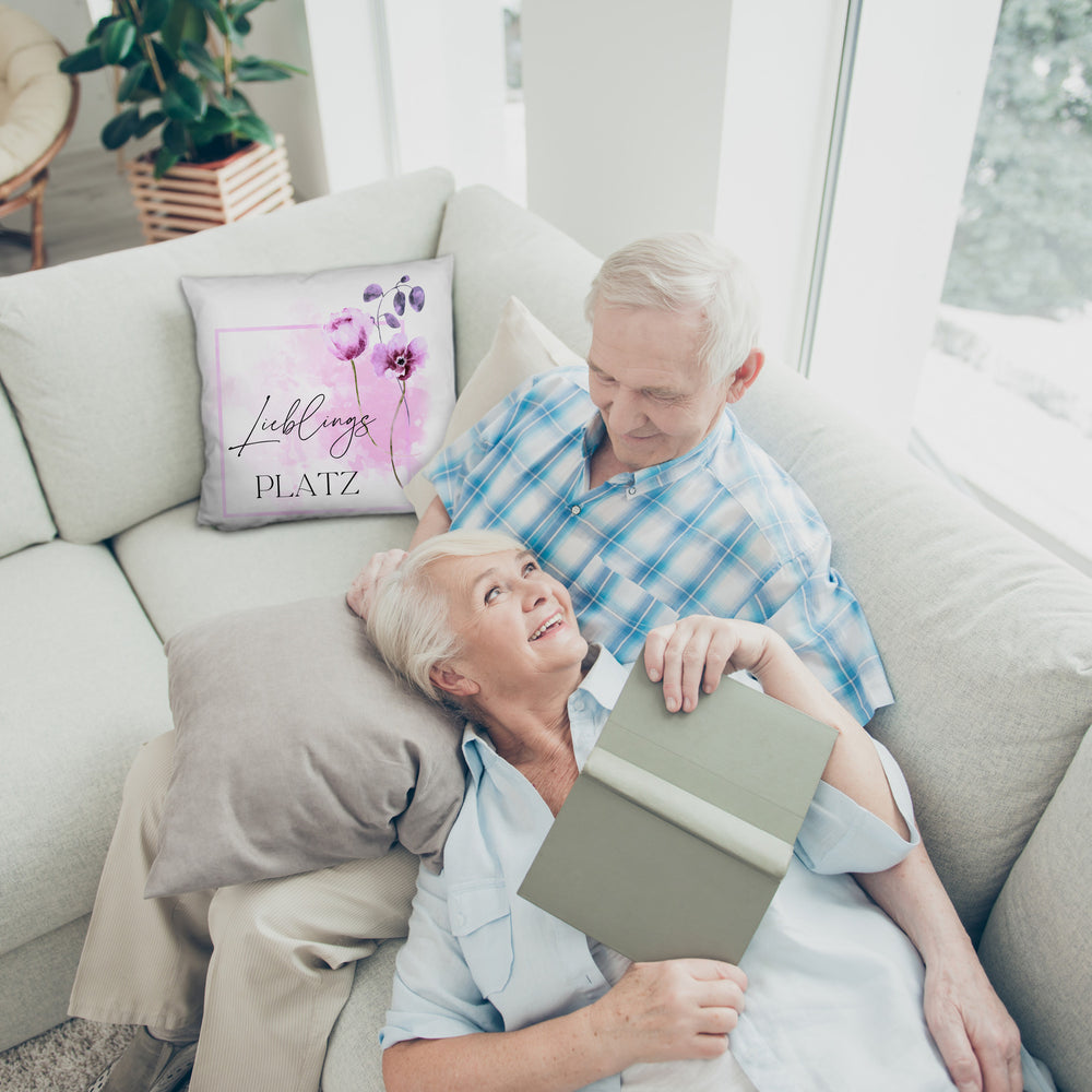 Lieblingsplatz Kissen mit Blumen Motiv für Freunde zum Geburtstag