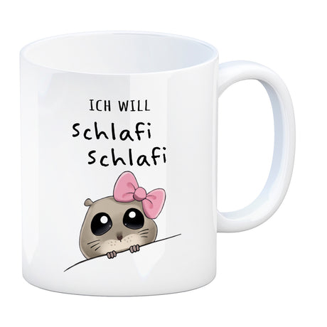 Meme Hamster Kaffeebecher mit Spruch Ich will Schlafi Schlafi