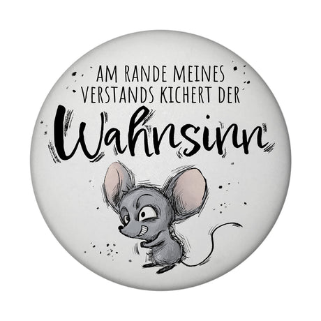 Maus Magnet rund rund mit Spruch Wahnsinn kichert am Rand des Verstands