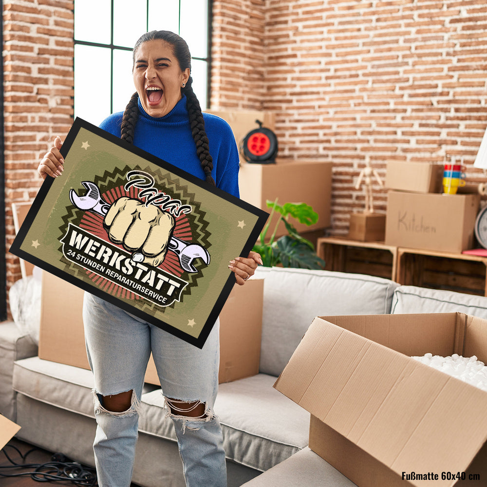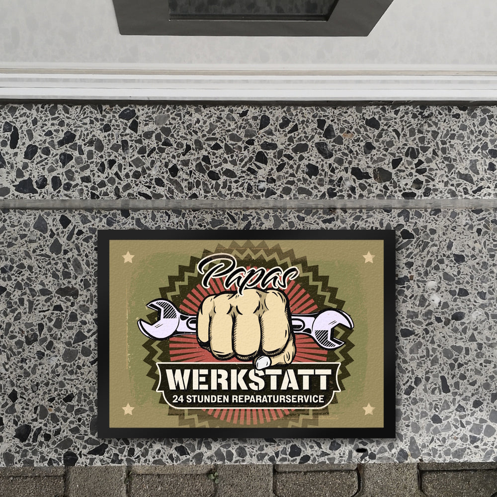 Papas Werkstatt Fußmatte im rostigen Retrolook