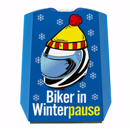Parkscheibe zum Thema Motorradfahren mit Spruch Biker in Winterpause