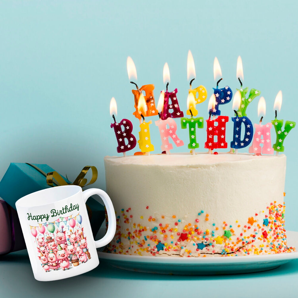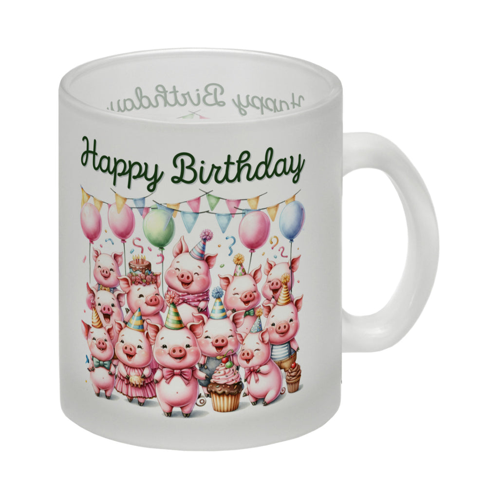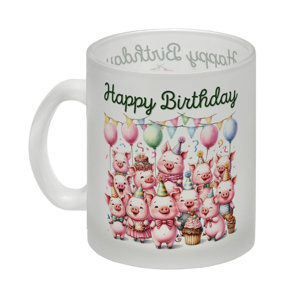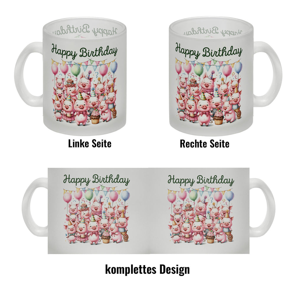 - 1x Schweine Party Kaffeebecher mit Spruch Happy Birthday in der gewählten Ausführung