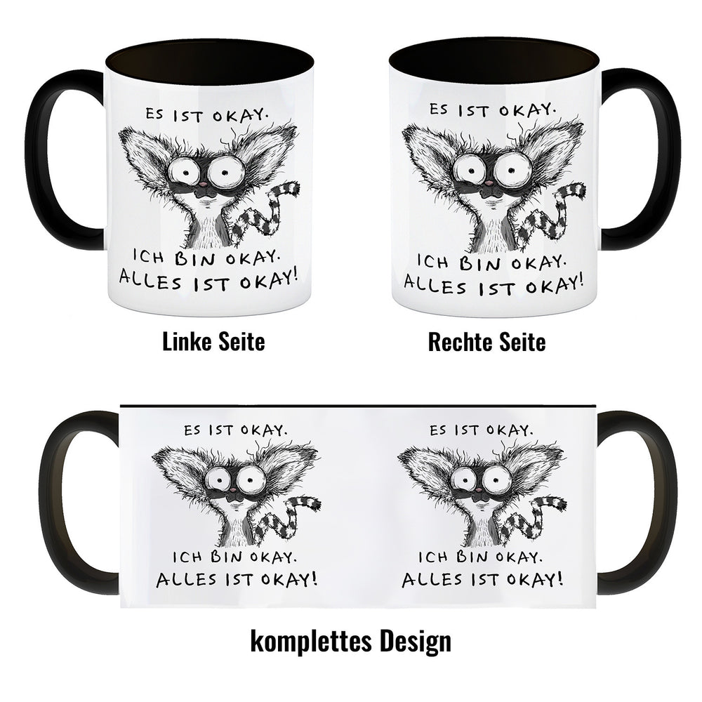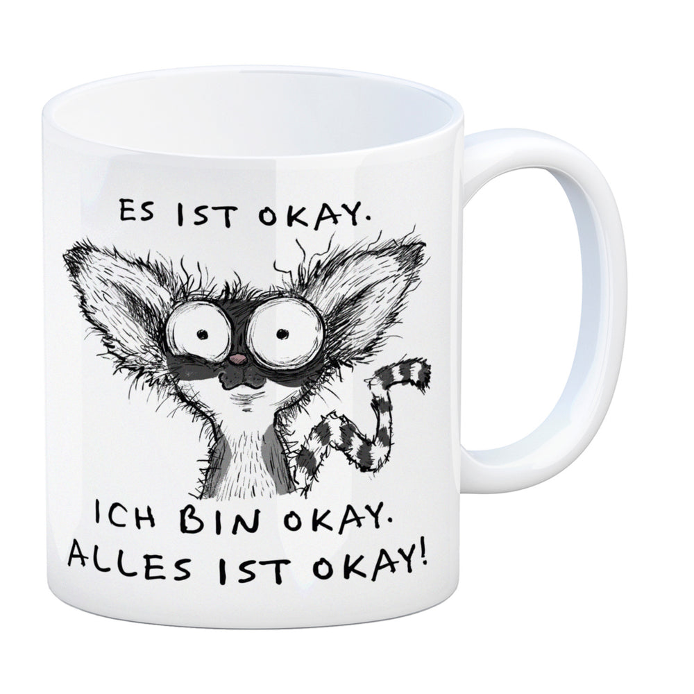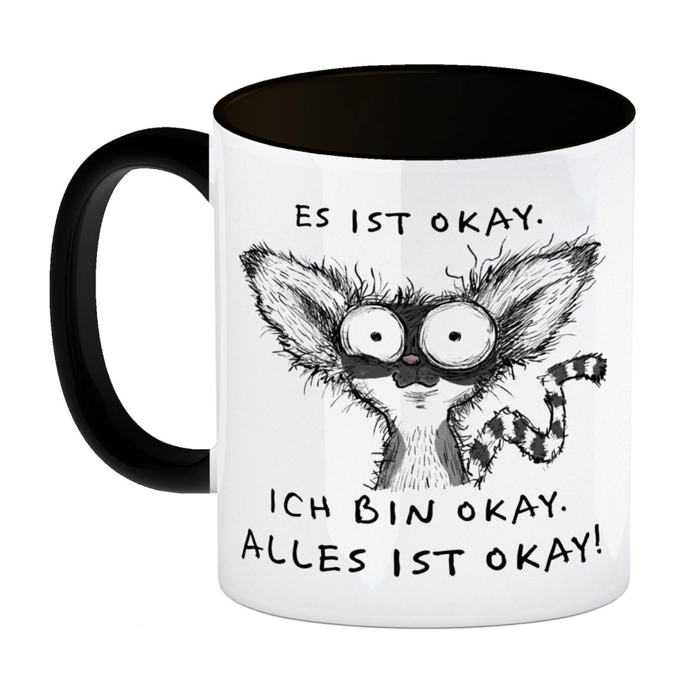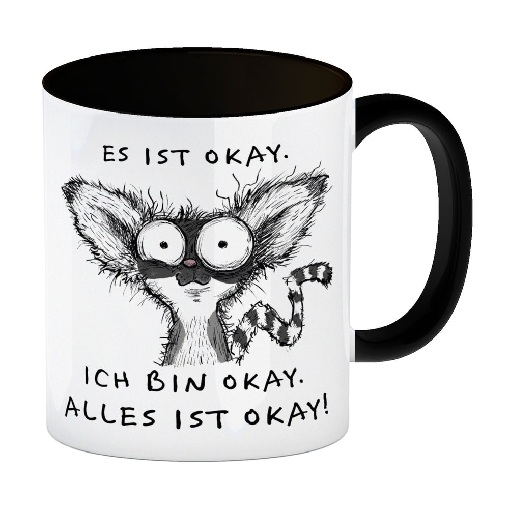 - 1x Verrückter Lemur Kaffeebecher mit Spruch Es ist okay Ich bin okay Alles ist okay in der gewählten Ausführung