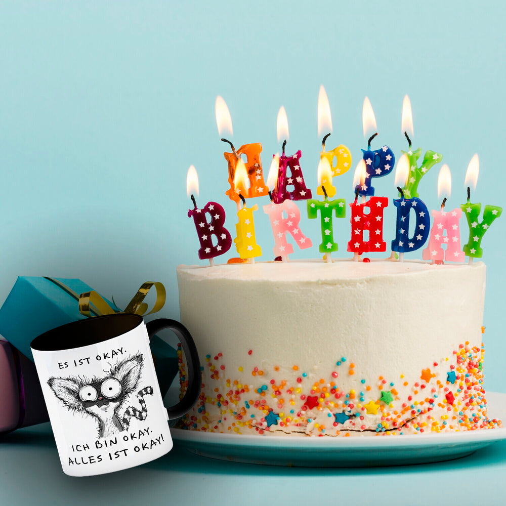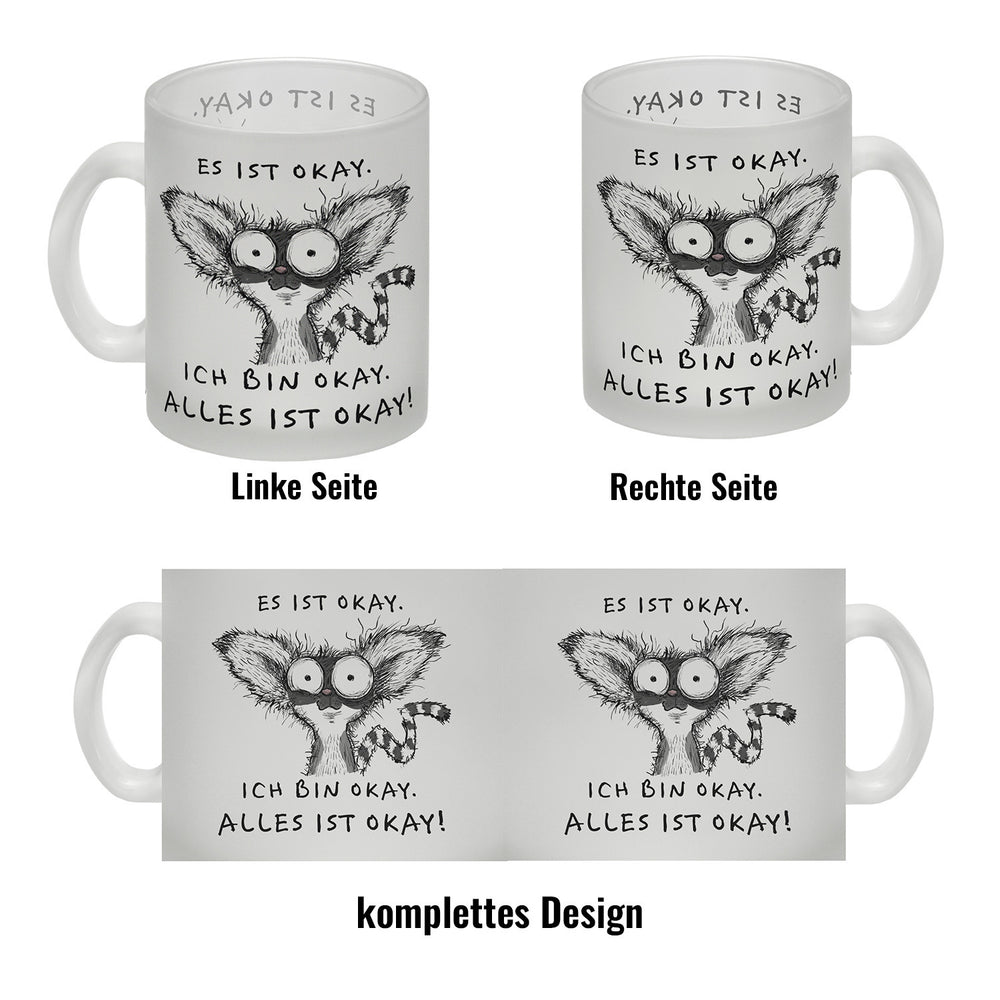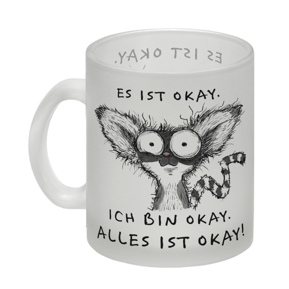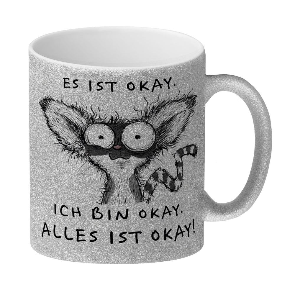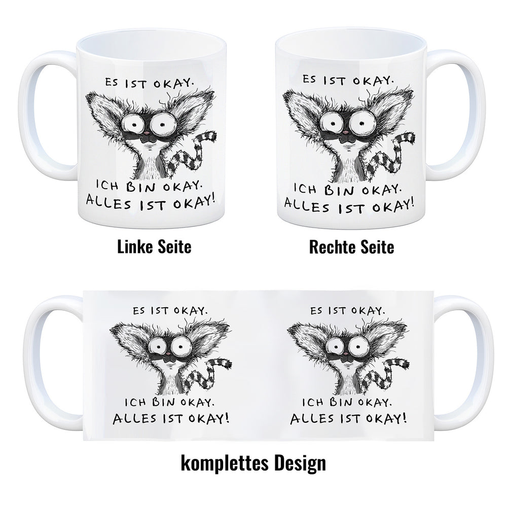 - 1x Verrückter Lemur Kaffeebecher mit Spruch Es ist okay Ich bin okay Alles ist okay in der gewählten Ausführung