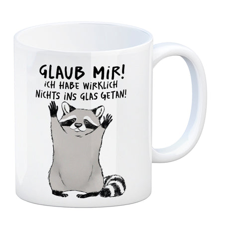 Waschbär Kaffeebecher mit Spruch Glaub mir Ich habe wirklich nichts ins Glas getan