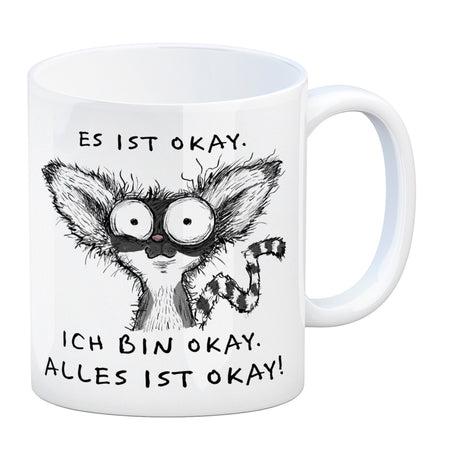 Verrückter Lemur Kaffeebecher mit Spruch Es ist okay Ich bin okay Alles ist okay