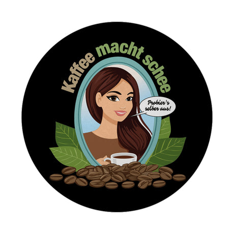 €11,95Grundpreis /Nicht verfügbar Frau im Spiegel Magnet rund mit Spruch: Kaffee macht schee. Probiers selber aus!