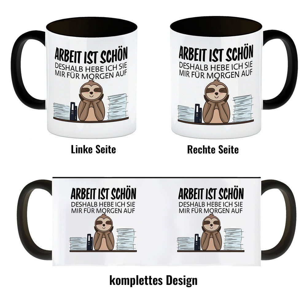 • 1x Arbeit für morgen aufheben Faultier Kaffeebecher in der gewählten Ausführung