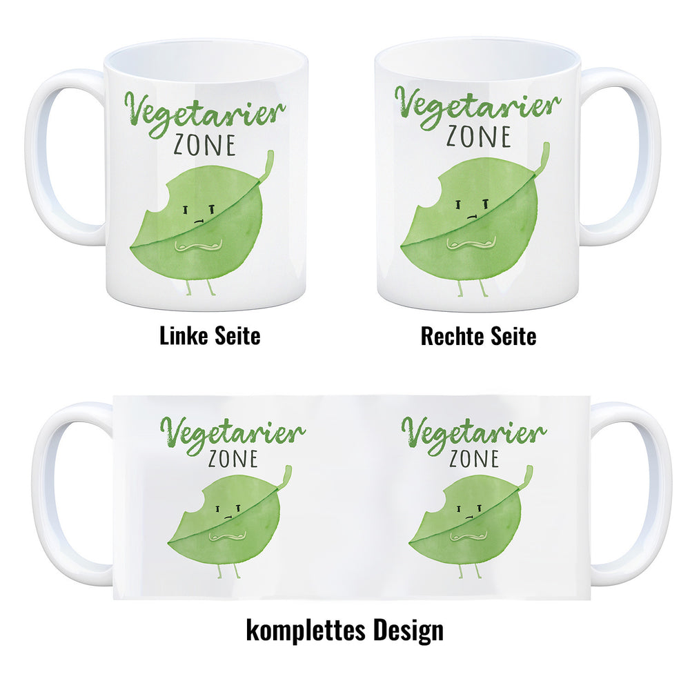 Blatt Kaffeebecher mit Spruch Vegetarier Zone
