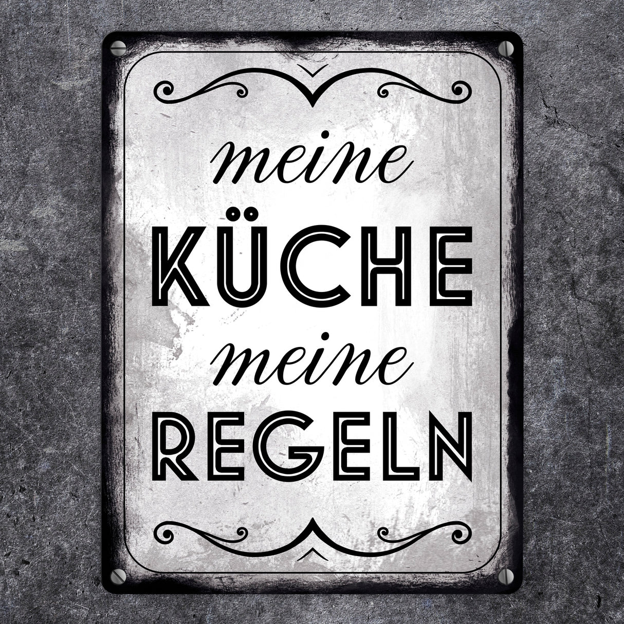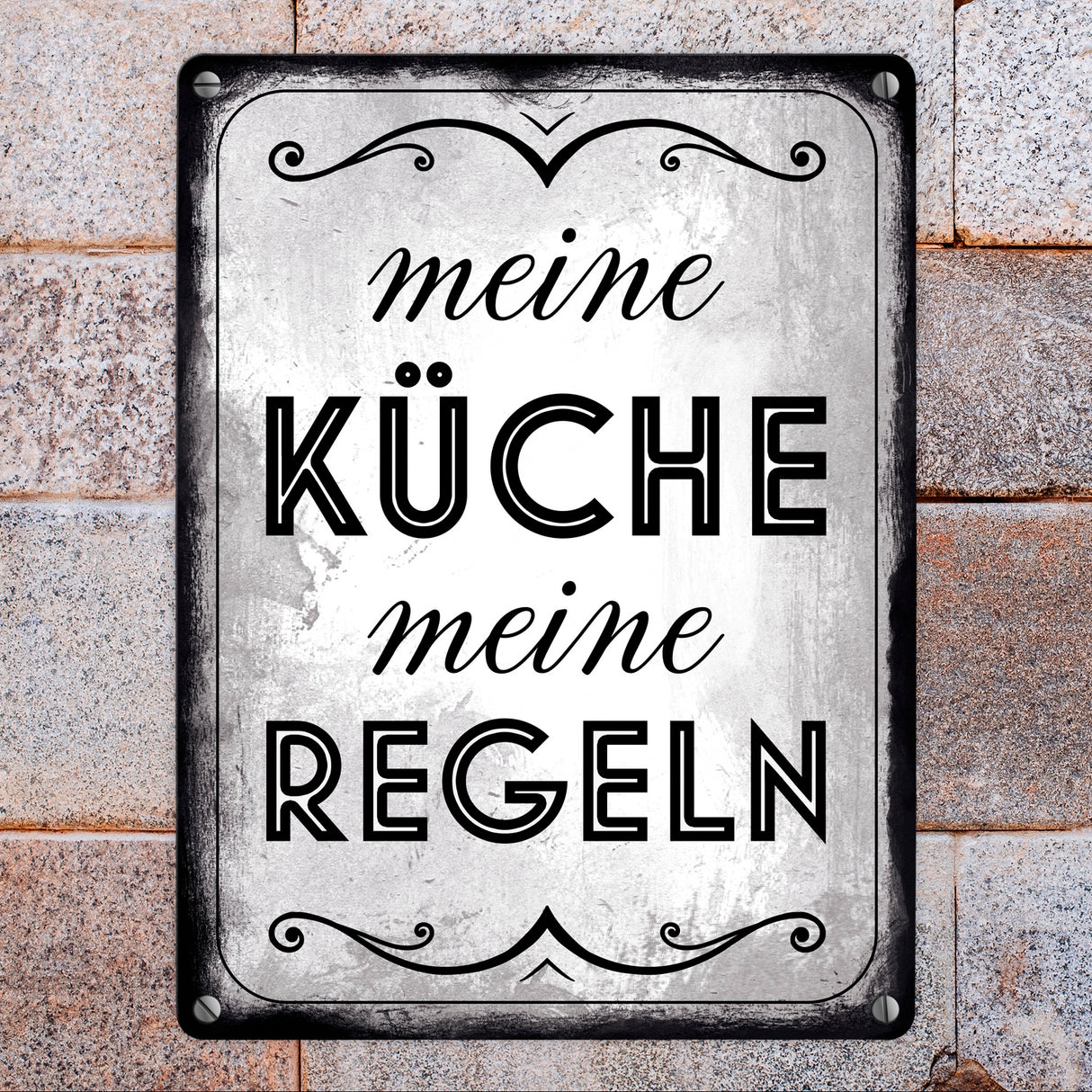 - 1x Meine Küche meine Regeln Retro Metallschild in der gewählten Größe
